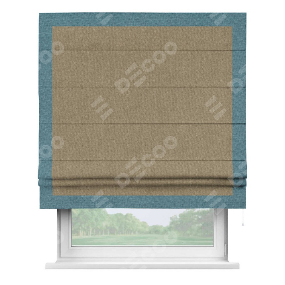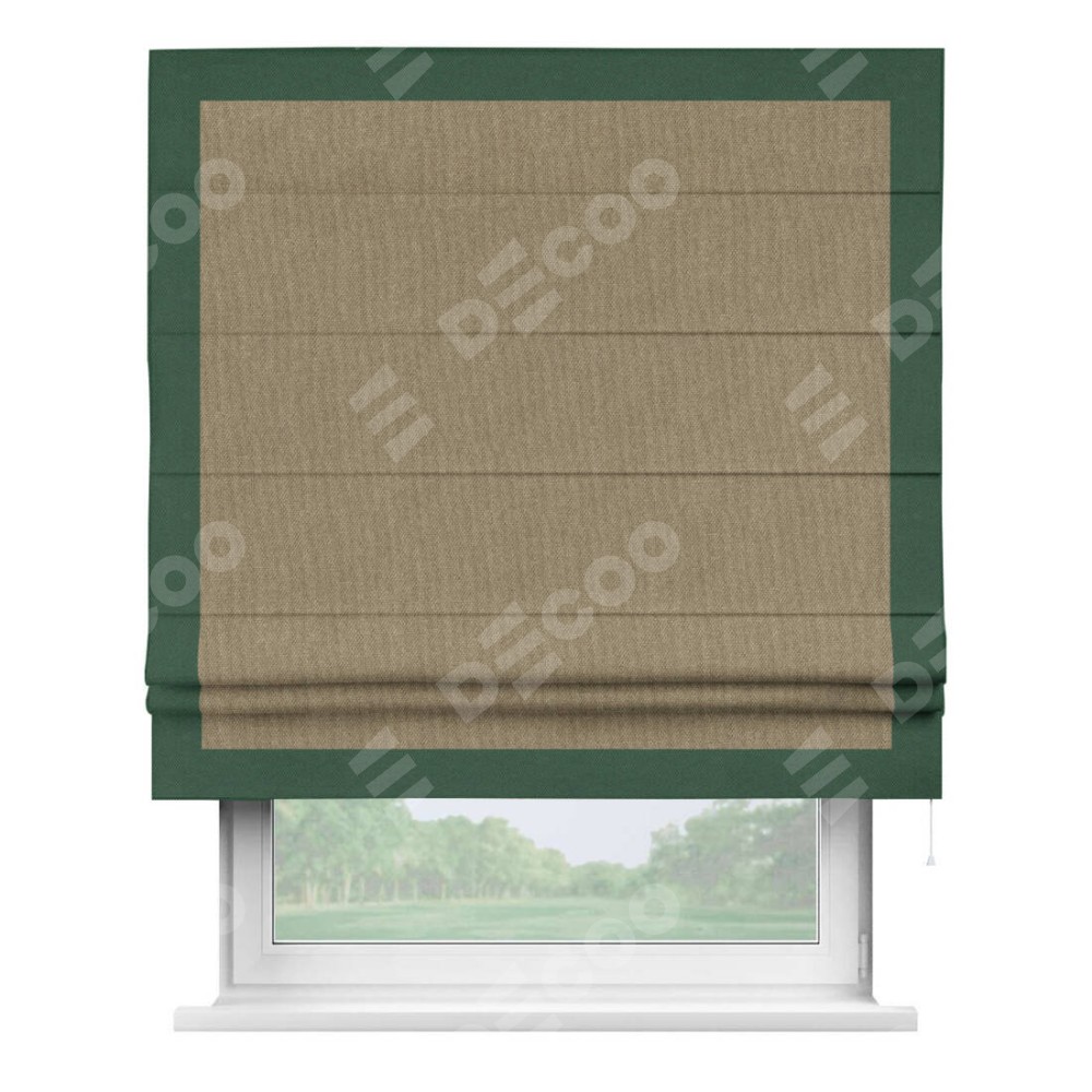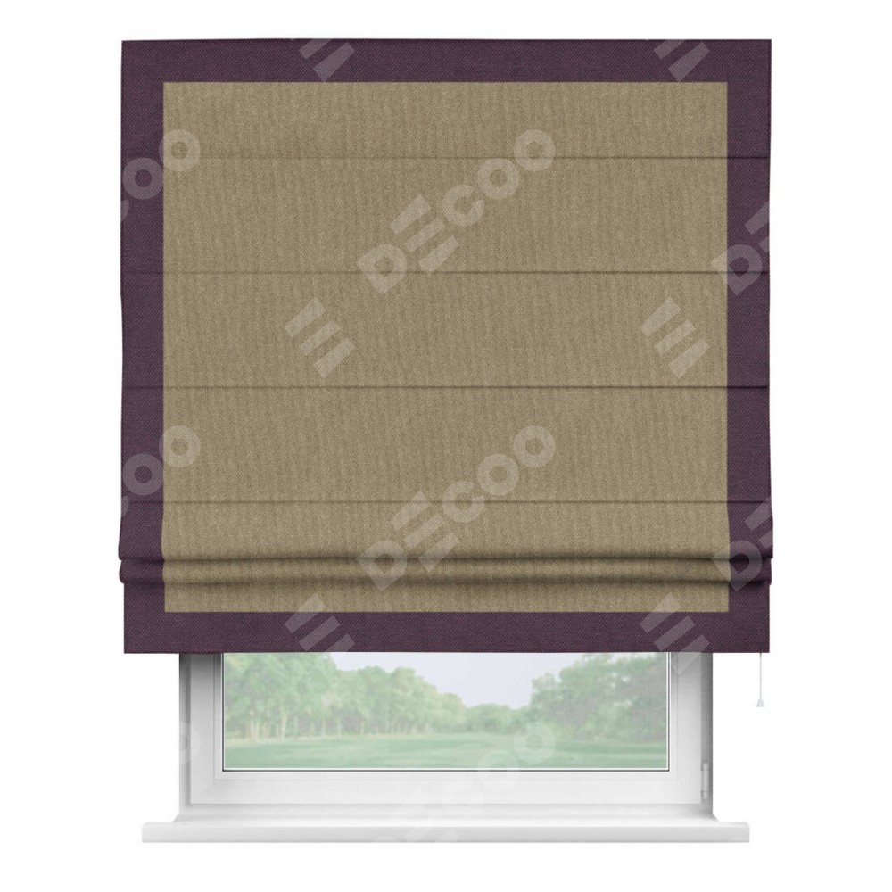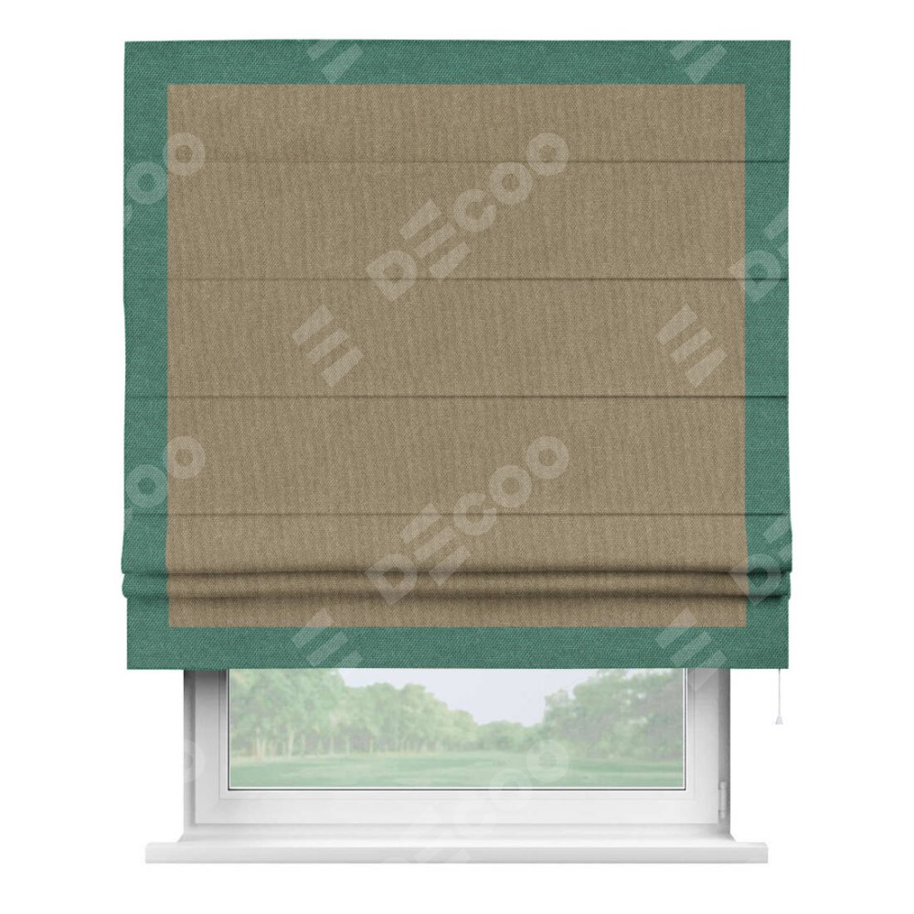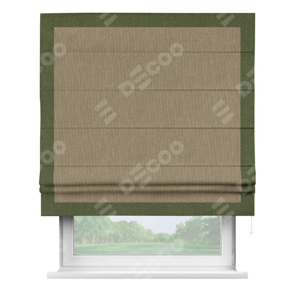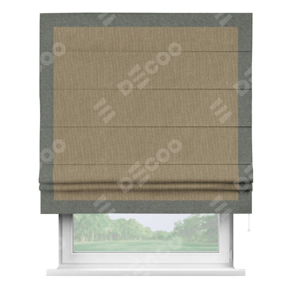 Римская штора «Кортин» для проема, лён димаут тёмно-бежевый с кантом Чесс