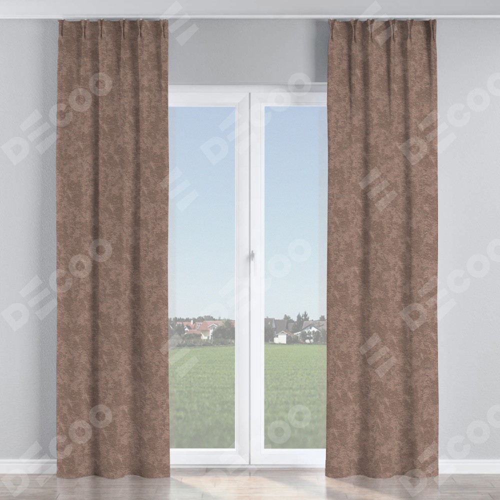 Комплект прямых штор, от производителя «Cortin», пошиты из ткани софт мрамор капучино, артикул ткани 93577. С изнаночной стороны в верхней части штор пристрачивается шторная лента с декоративными складками «Кустик». Для создания элегантных складок прямые шторы шьются по стандарту с коэффициентом 1:2 (на 100 см. ширины проёма 200 см. ширины ткани).