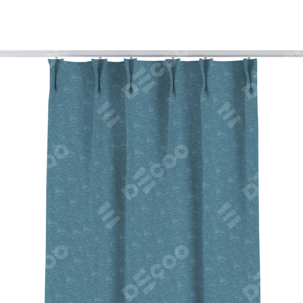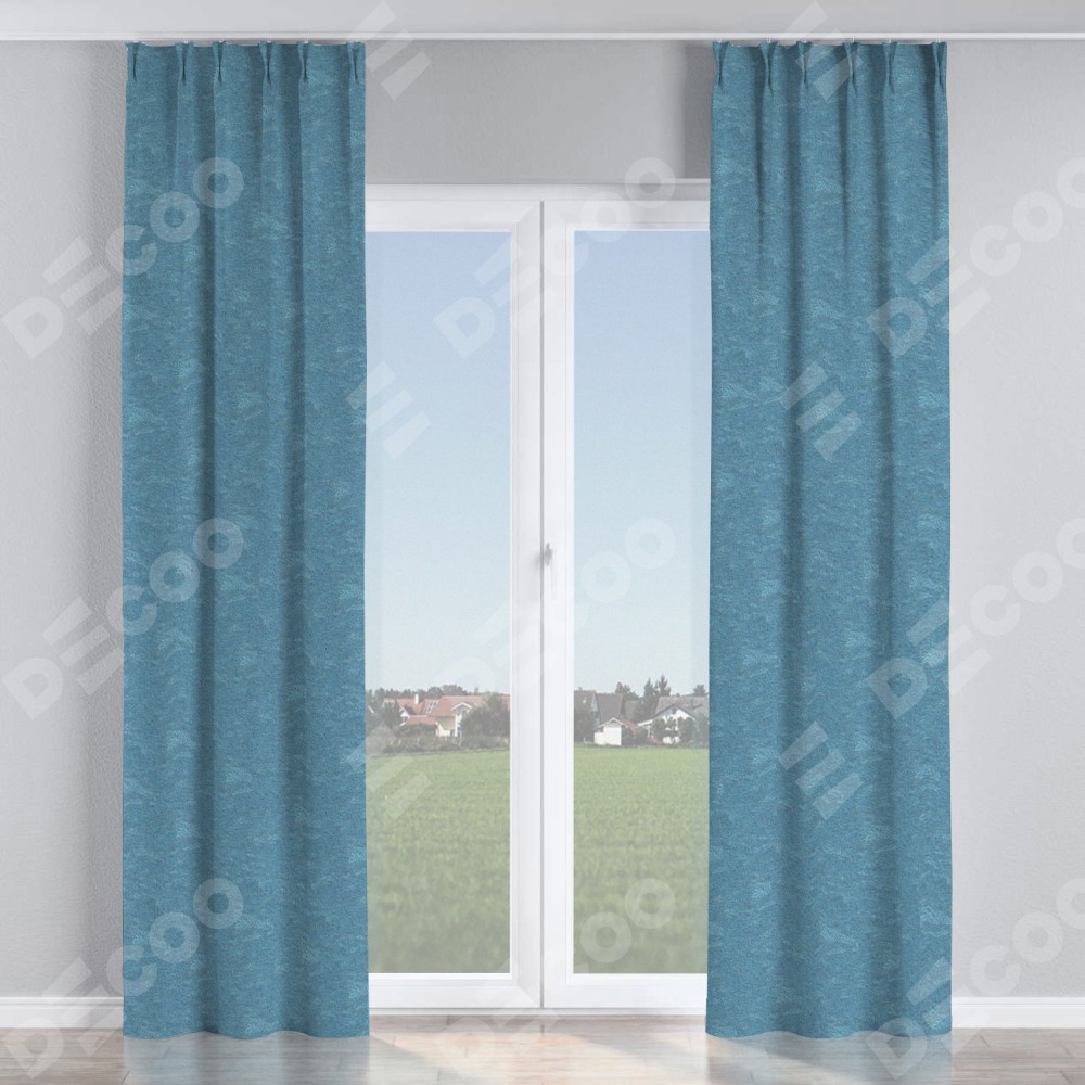 Комплект прямых штор, от производителя «Cortin», пошиты из ткани софт мрамор голубой, артикул ткани 93580. С изнаночной стороны в верхней части штор пристрачивается шторная лента с декоративными складками «Кустик». Для создания элегантных складок прямые шторы шьются по стандарту с коэффициентом 1:2 (на 100 см. ширины проёма 200 см. ширины ткани).
