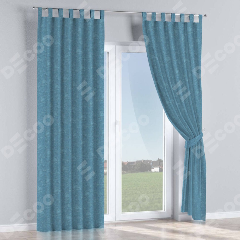 Комплект прямых штор, от производителя «Cortin», пошиты из ткани софт мрамор голубой, артикул ткани 93580. Данная модель пошита на петлях, комплектуется на выбор круглым карнизом и подходит для монтажа на стену или потолок. Прямые шторы на петлях шьются по стандарту с коэффициентом 1/2 (на 100 см. ширины проёма 200 см. ширины ткани), отличительным преимуществом данной модели является простой способ монтажа. Достаточно повесить ее на трубу и штора готова!