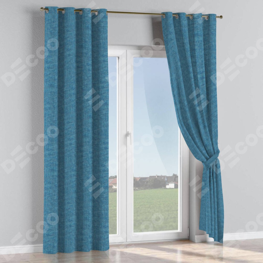 Комплект прямых штор, от производителя «Cortin», пошиты из ткани рогожка димаут лазурно-синий, артикул ткани 91024. Данная модель пошита на люверсах, комплектуется на выбор круглым карнизом и подходит для монтажа на стену или потолок. Прямые шторы на люверсах шьются по стандарту с коэффициентом 1/2 (на 100 см. ширины проёма 200 см. ширины ткани), отличительным преимуществом данной модели является простой способ монтажа. Достаточно повесить ее на трубу и штора готова!