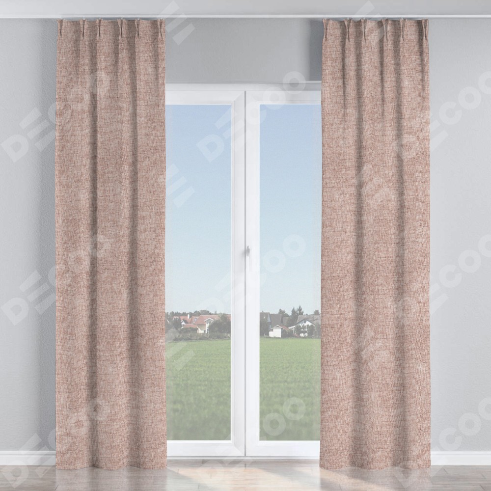 Комплект прямых штор, от производителя «Cortin», пошиты из ткани рогожка димаут пыльный розовый, артикул ткани 91019. С изнаночной стороны в верхней части штор пристрачивается шторная лента с декоративными складками «Кустик». Для создания элегантных складок прямые шторы шьются по стандарту с коэффициентом 1:2 (на 100 см. ширины проёма 200 см. ширины ткани).