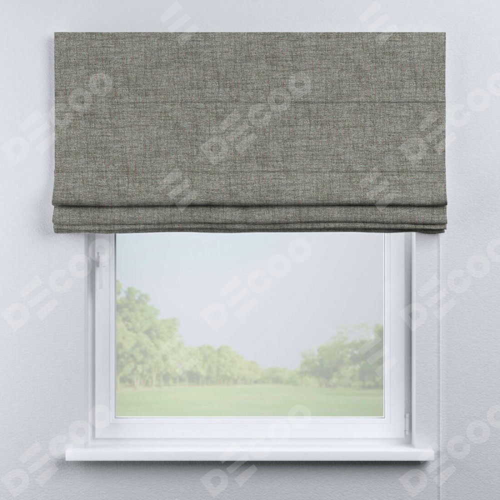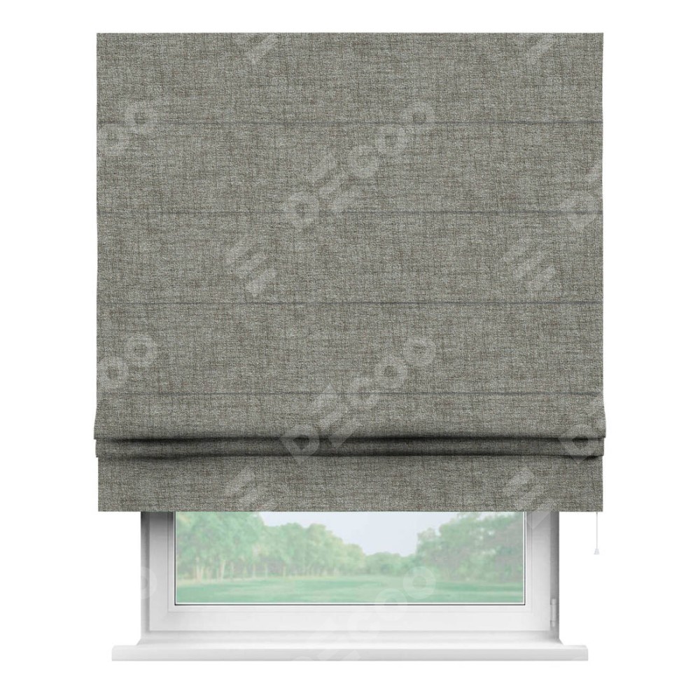 Классическая римская штора производителя «Cortin», пошита из ткани рогожка димаут серый дуб, артикул: 91028. Имеет универсальный механизм и подходит для монтажа: на потолок, на стену и в нишу.