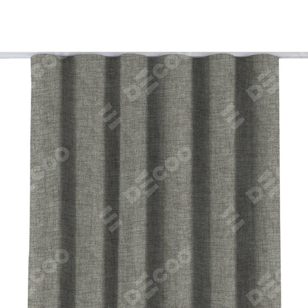 Комплект прямых штор, от производителя «Cortin», пошиты из ткани рогожка димаут серый дуб, артикул ткани 91028. С изнаночной стороны в верхней части штор пристрачивается шторная лента с декоративными складками «Волна». Для создания элегантных складок прямые шторы шьются по стандарту с коэффициентом 1:2 (на 100 см. ширины проёма 200 см. ширины ткани).