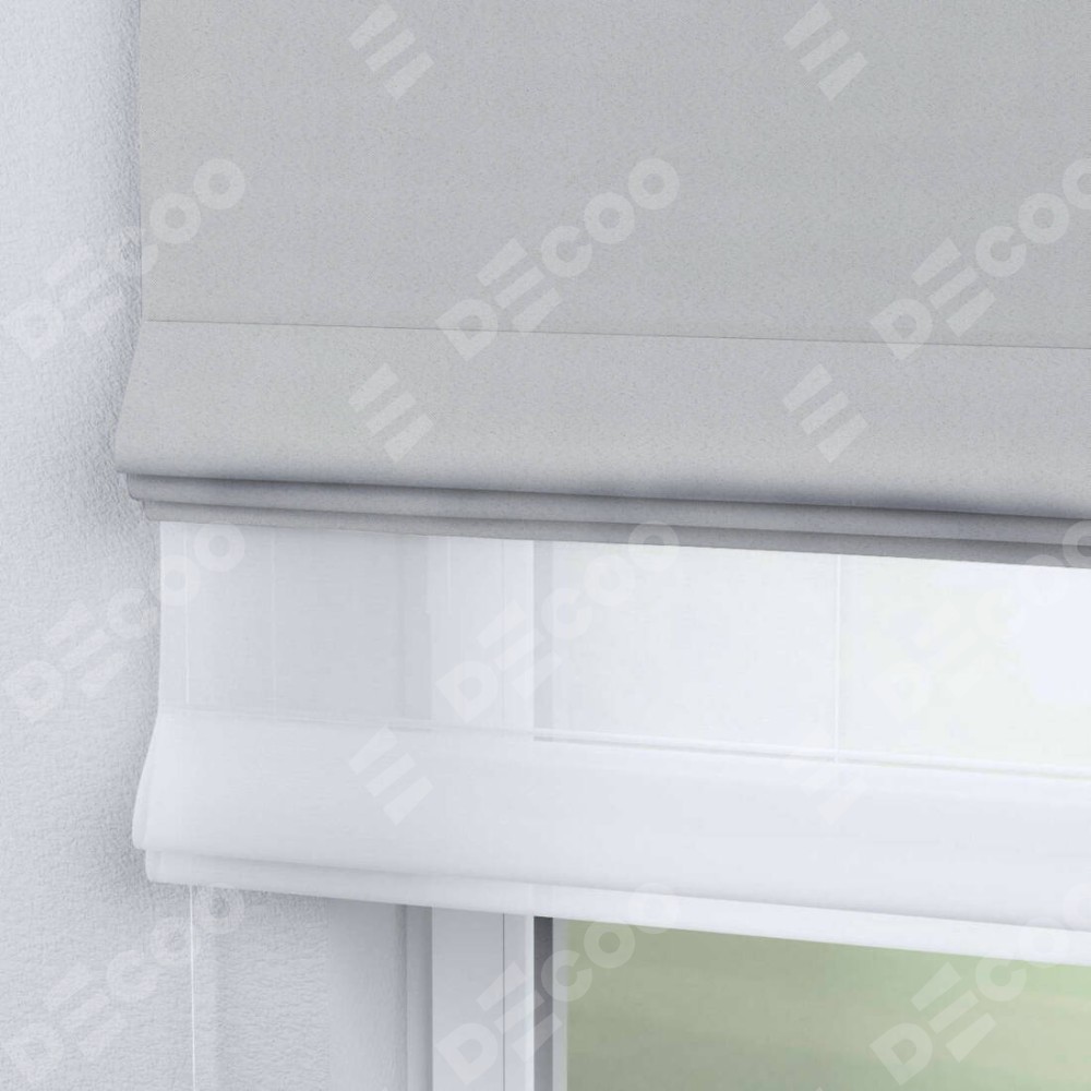Двойная римская штора «День-ночь» от производителя Cortin предназначена для использования в проёмах. Эта штора уникальна тем, что состоит из двух полотен. На лицевой стороне находится однотонный блэкаут милк (артикул: 23), обеспечивающий эффективное затемнение. В комплект также входит вторая ткань — легкий белый тюль (артикул: V-01), который добавляет изящества и легкости оформлению окна. Кроме того, доступны и другие разновидности ткани тюль, выбор которых доступен по  ссылке .