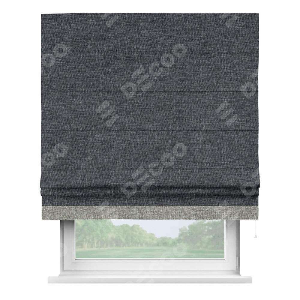 Римская штора «Кортин» для проёма, рогожка димаут графит, с кантом Джестер