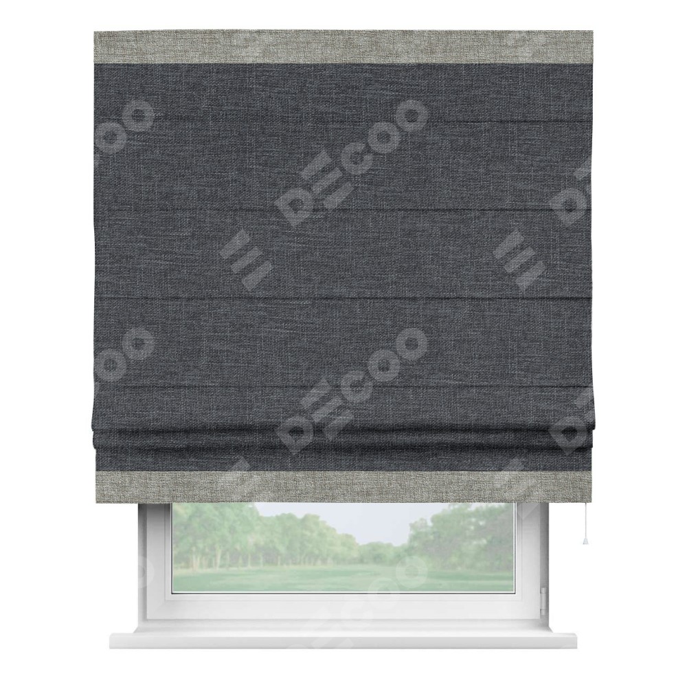 Римская штора «Кортин» для проёма, рогожка димаут графит, с кантом Горизонт