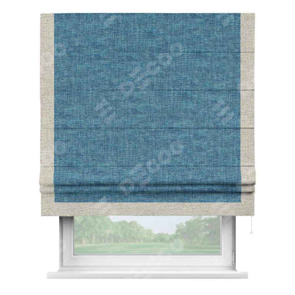 Римская штора «Кортин» для проёма, рогожка димаут лазурно-синий, с кантом Виктория