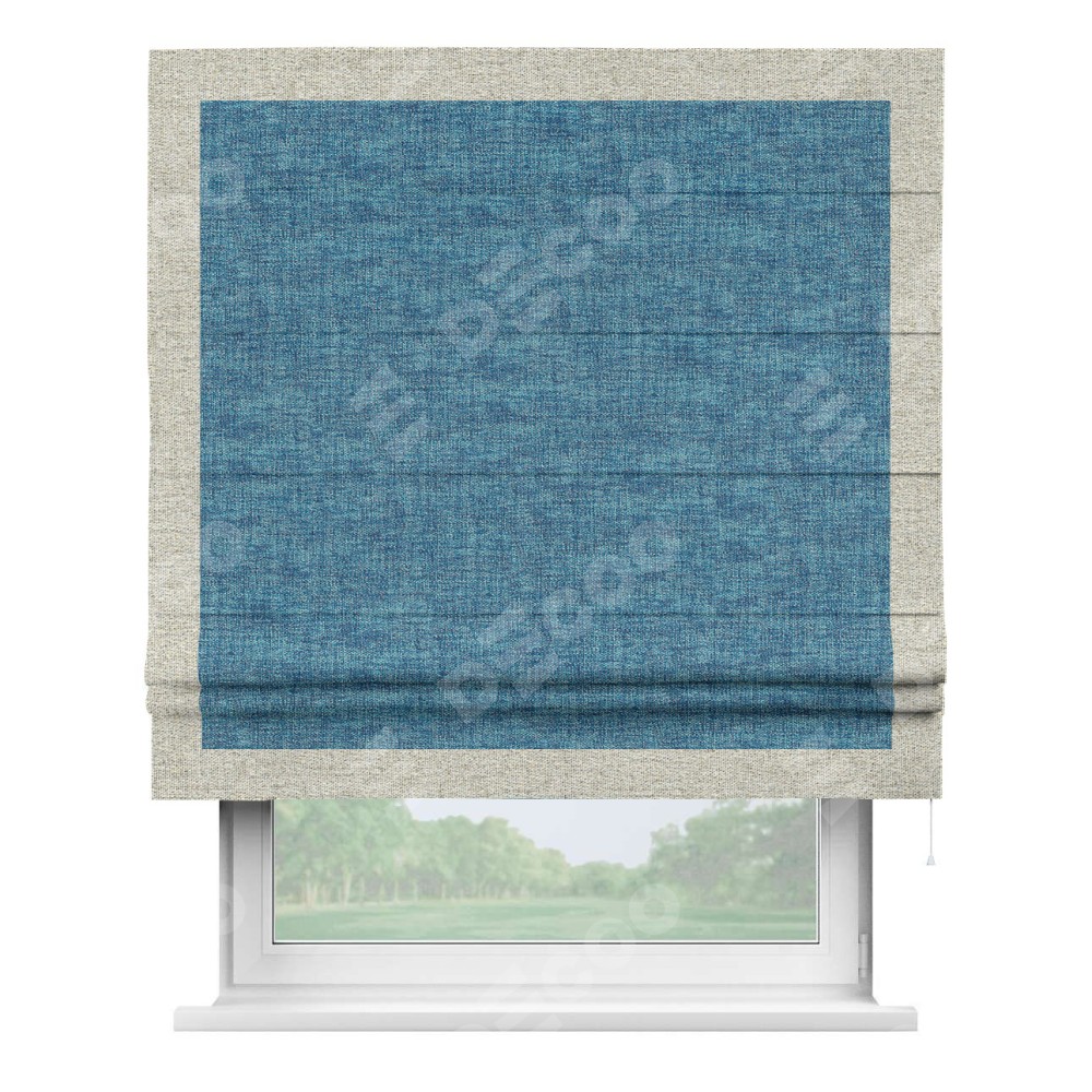 Римская штора «Кортин» для проёма, рогожка димаут лазурно-синий, с кантом Чесс