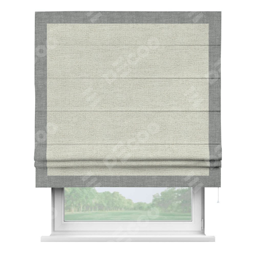 Римская штора «Кортин» для проёма, рогожка димаут серо-бежевый, с кантом Чесс