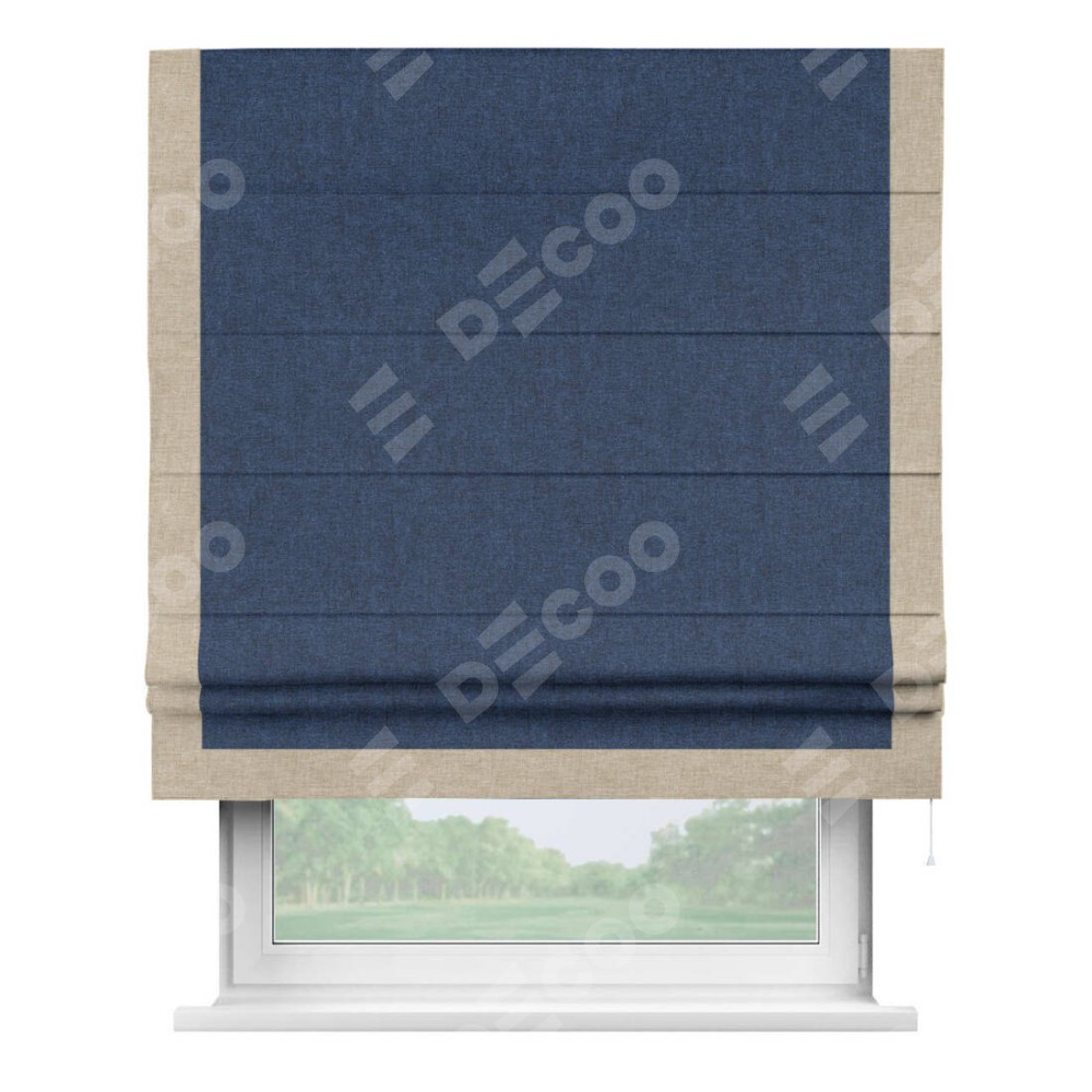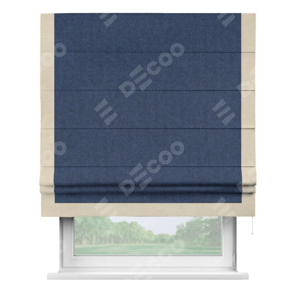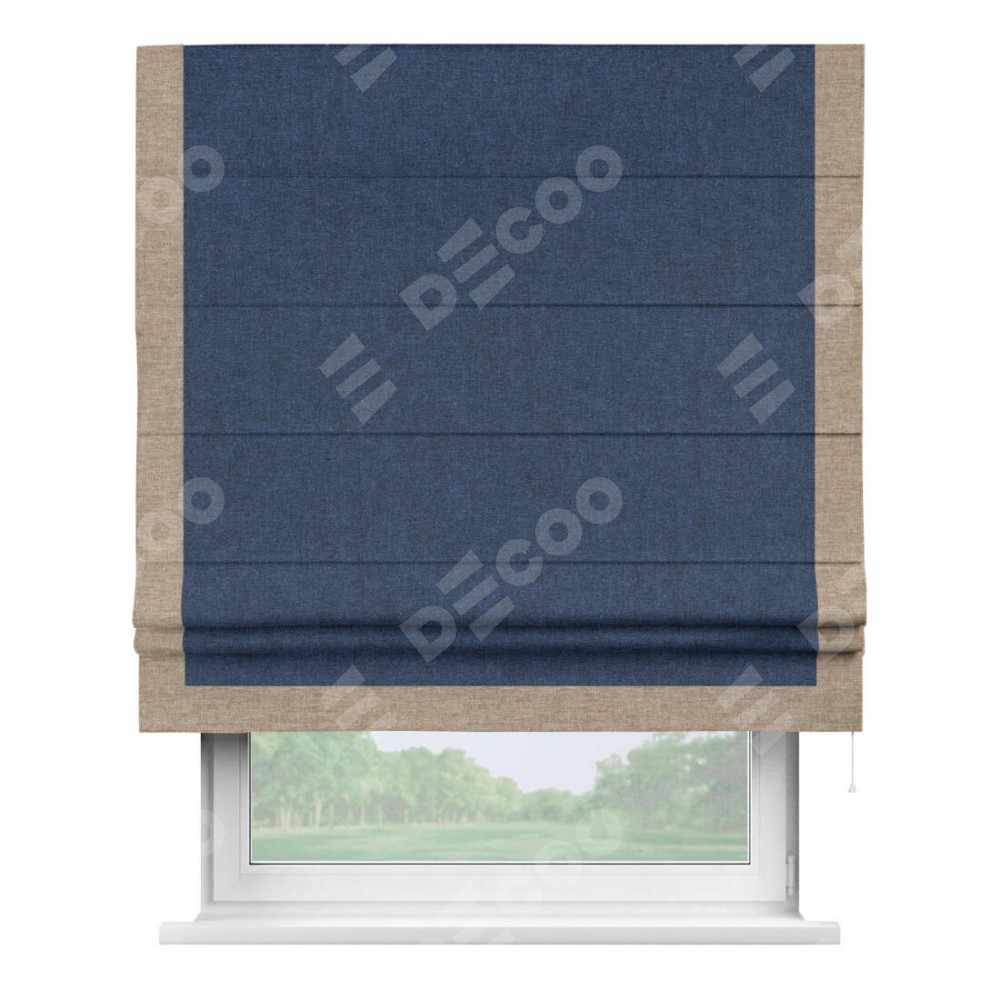 Римская штора «Кортин» для проёма, лён кашемир тёмно-синий, с кантом Виктория