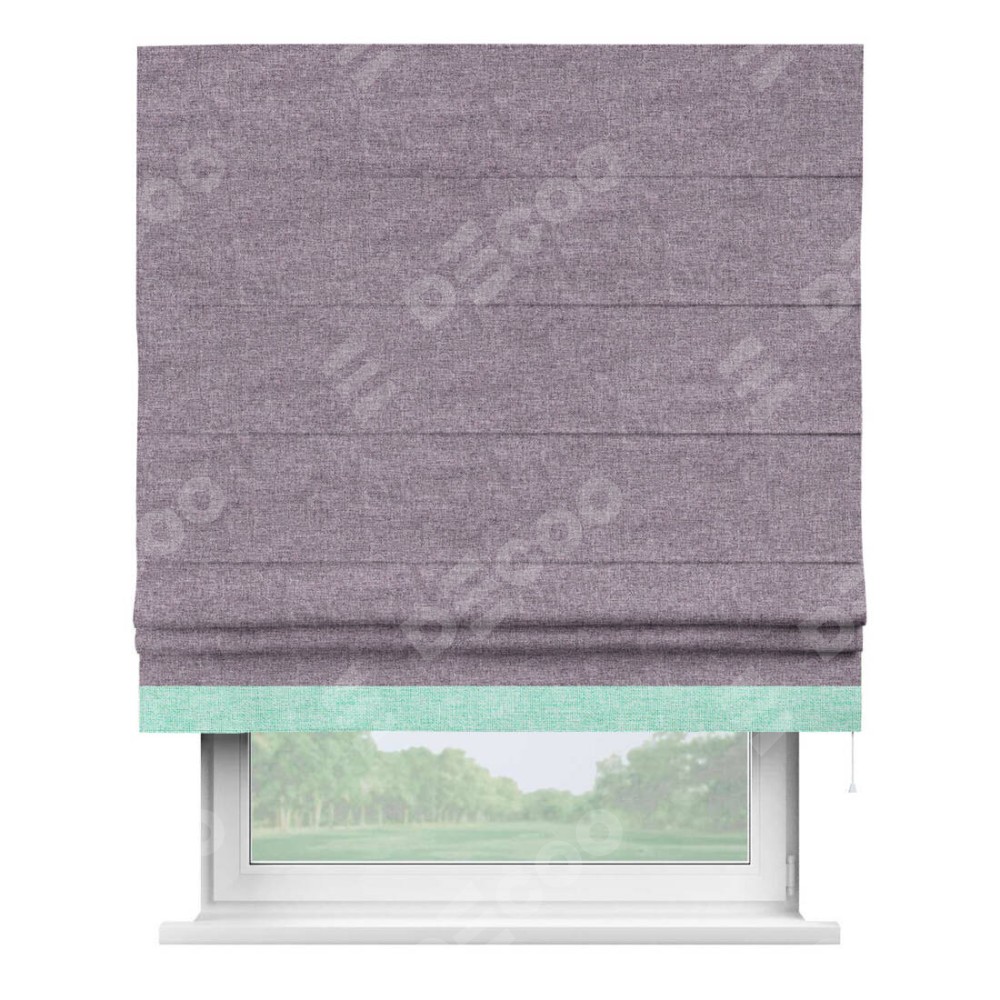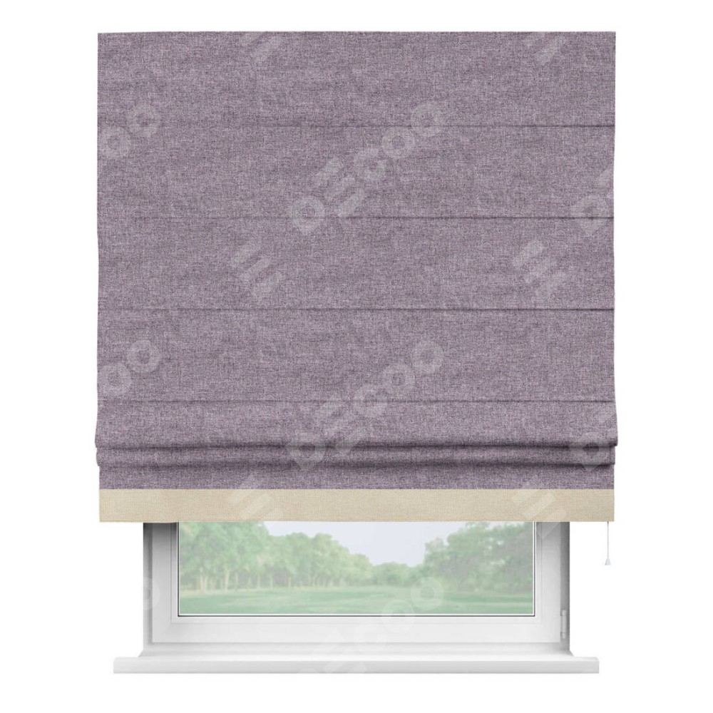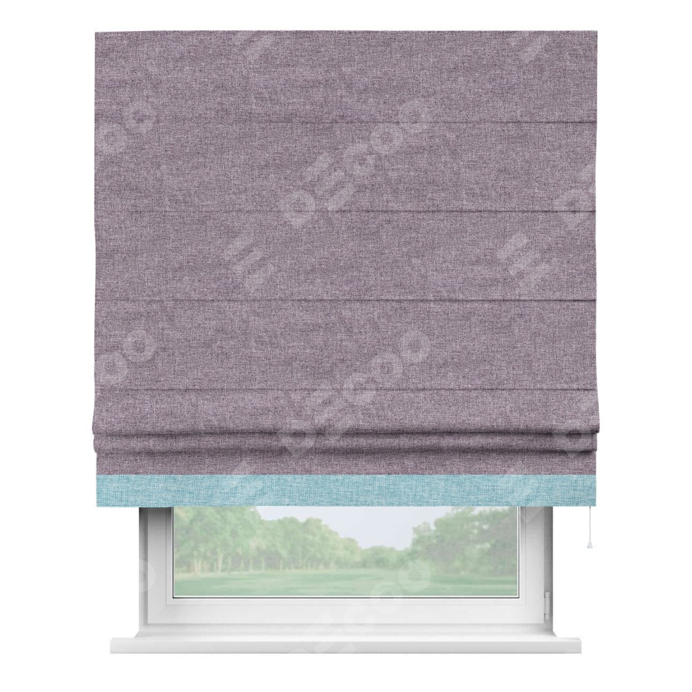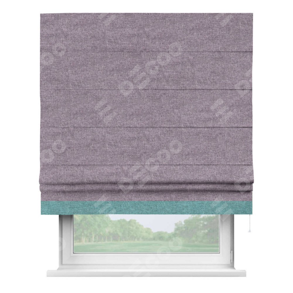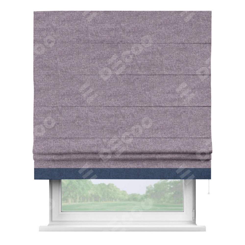 Римская штора «Кортин» для проёма, лён кашемир фиолетовый, с кантом Джестер