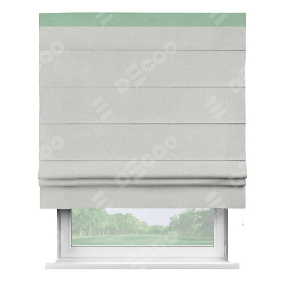 Римская штора пошита из ткани однотонный блэкаут милк, артикул: 23, с отделкой кантом «Кинг» отличается своей необычной особенностью: кант располагается исключительно сверху шторы. Такой дизайн делает акцент на верхней части окна, визуально поднимая потолок и придавая интерьеру более возвышенный и изысканный вид. Отделка кантом на верхней кромке не только украшает штору, но и может служить дополнительной защитой от износа в месте наибольшего контакта с механизмом управления шторой.