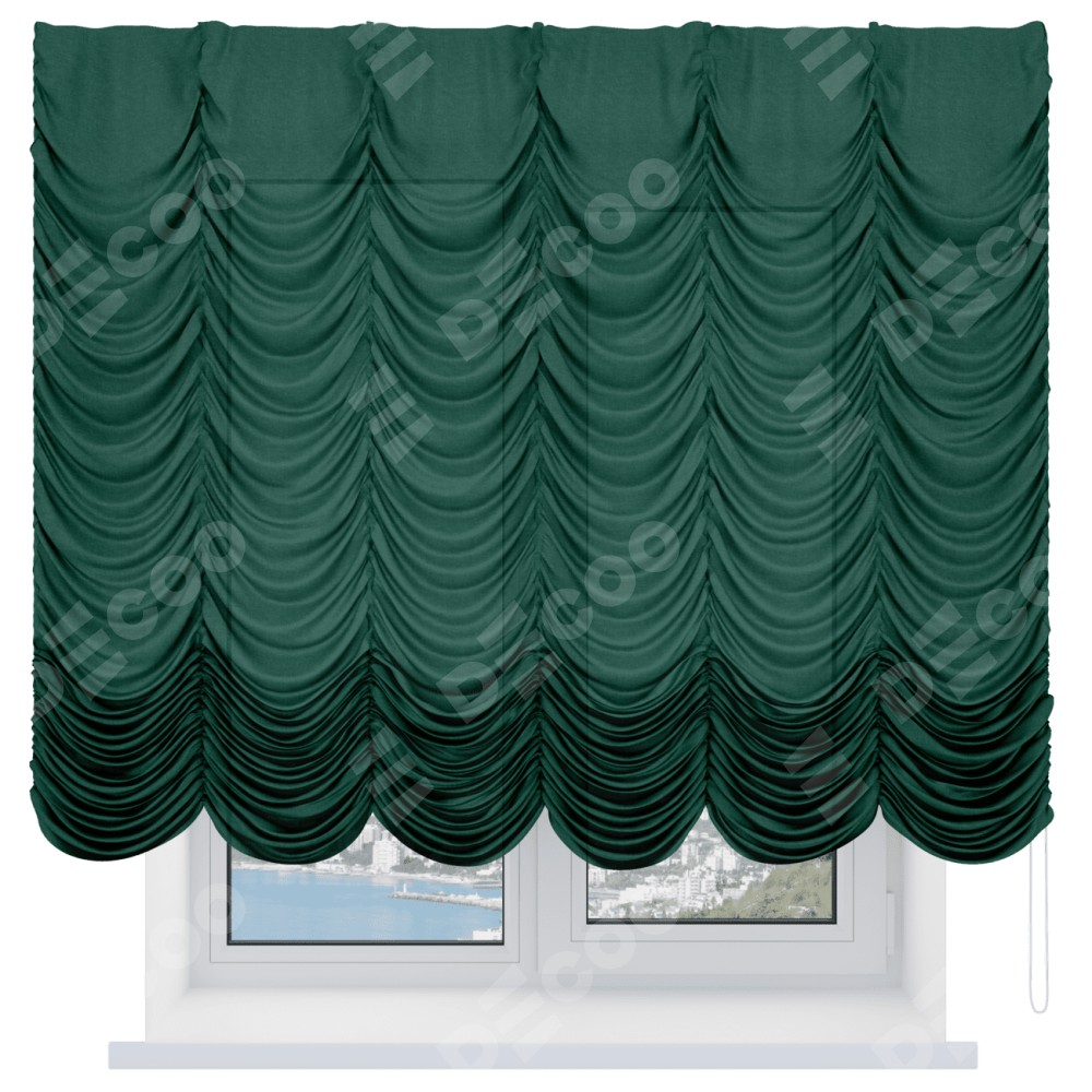 Французская штора производителя «Cortin», используется для проёма, пошита из ткани лён серо-зелёный, артикул ткани 63740. Имеет универсальный механизм и подходит для монтажа: на потолок и на стену.
