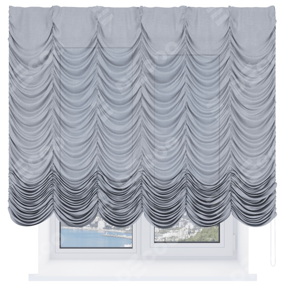 Французская штора производителя «Cortin», используется для проёма, пошита из ткани лён серый, артикул ткани 7440. Имеет универсальный механизм и подходит для монтажа: на потолок и на стену.