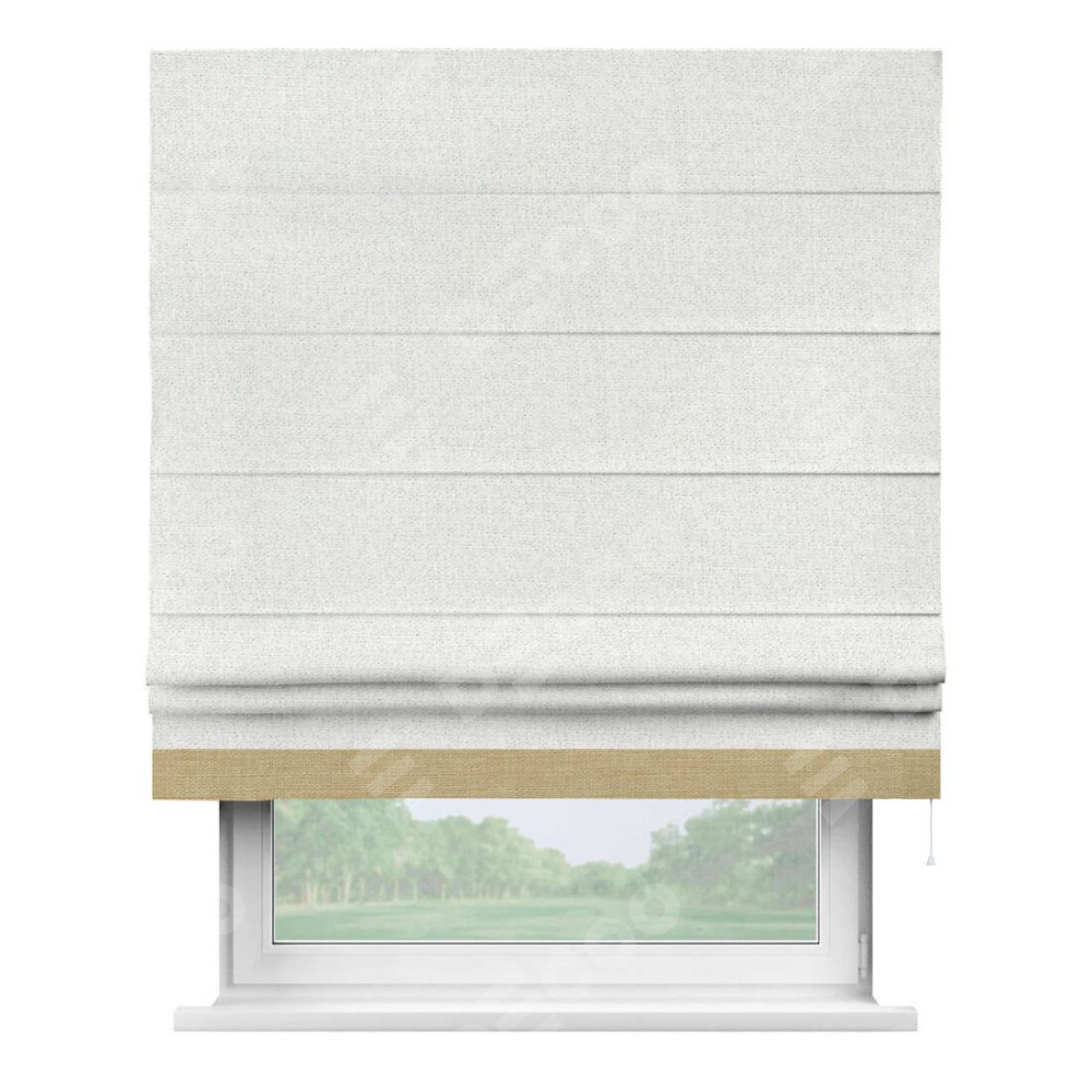 Римская штора пошита из ткани лён шампань, артикул: 91399, с отделкой кантом «Джестер» выделяется своей уникальной особенностью — кантом, расположенным только снизу шторы. Этот дизайн добавляет оригинальности и игривости оконному оформлению, делая акцент на нижней части шторы и создавая интересный визуальный эффект. Отделка кантом на нижнем крае не только служит эстетической функции, но и способствует увеличению прочности и износостойкости ткани в этом месте.