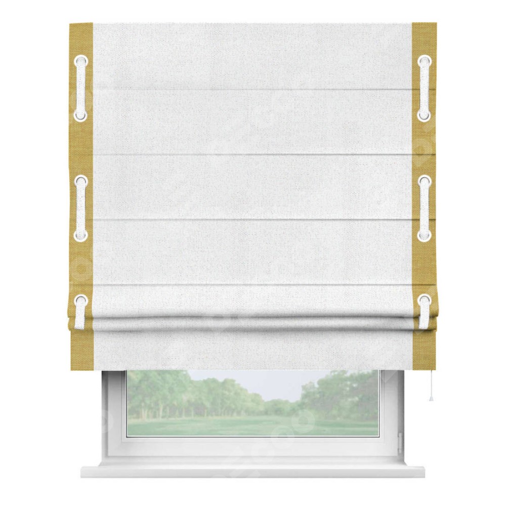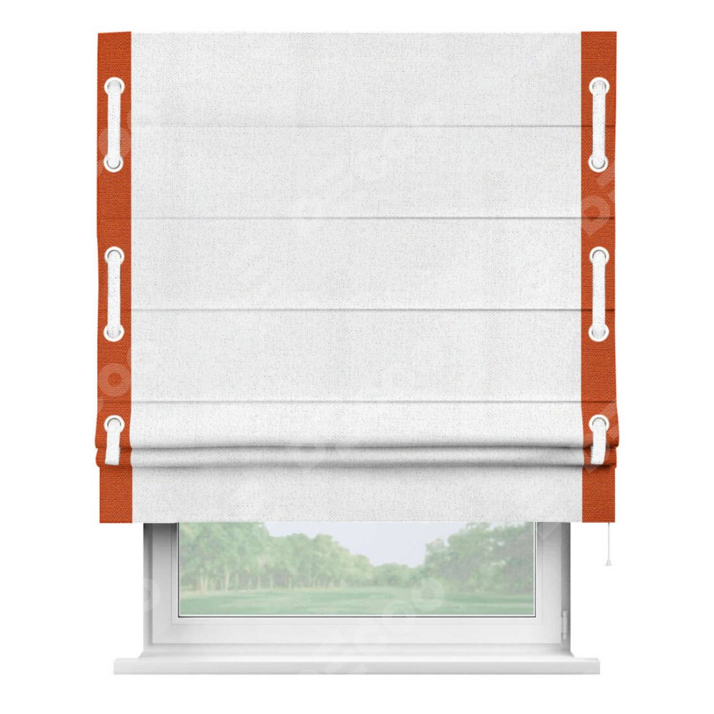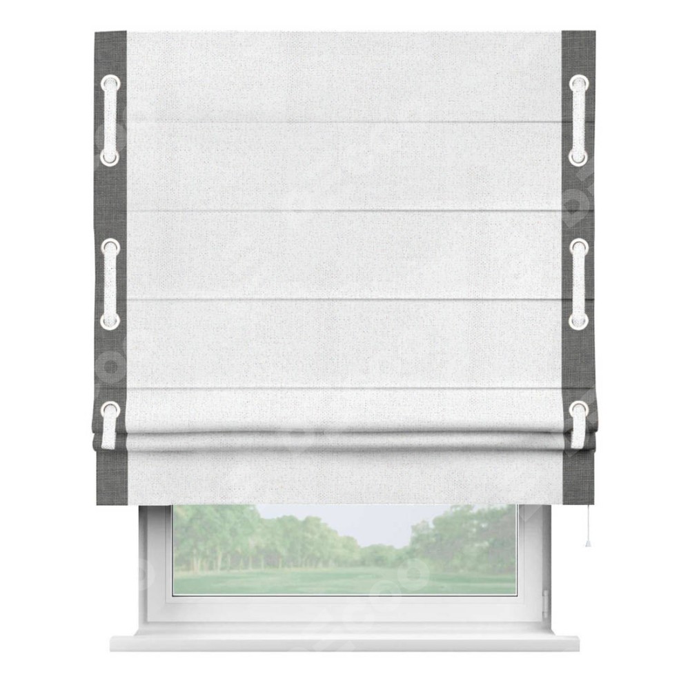 Римская штора «Кортин» для проема, лён белоснежный, с кантом Стрим Дуо (люверсы с пояском)