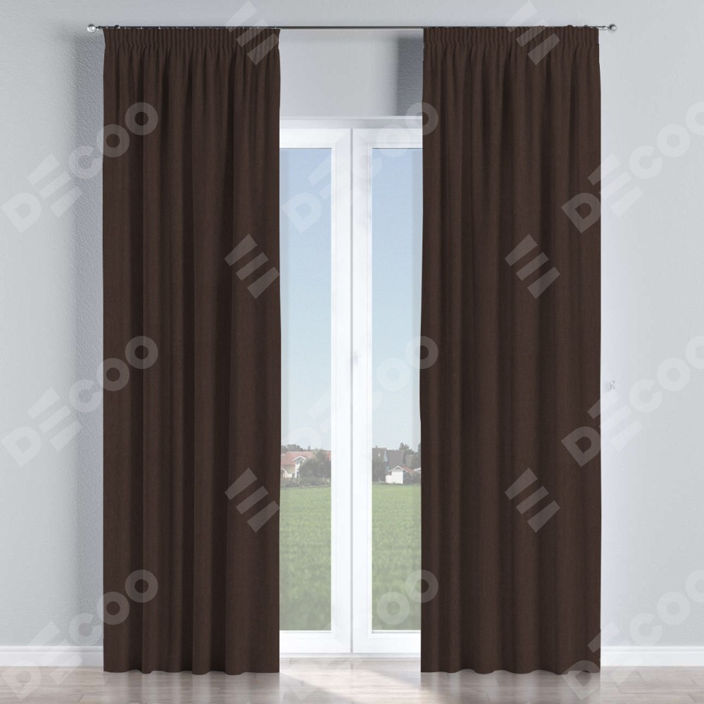 Комплект штор лён димаут венге, на тесьме «Карандаш»