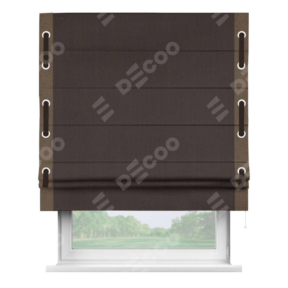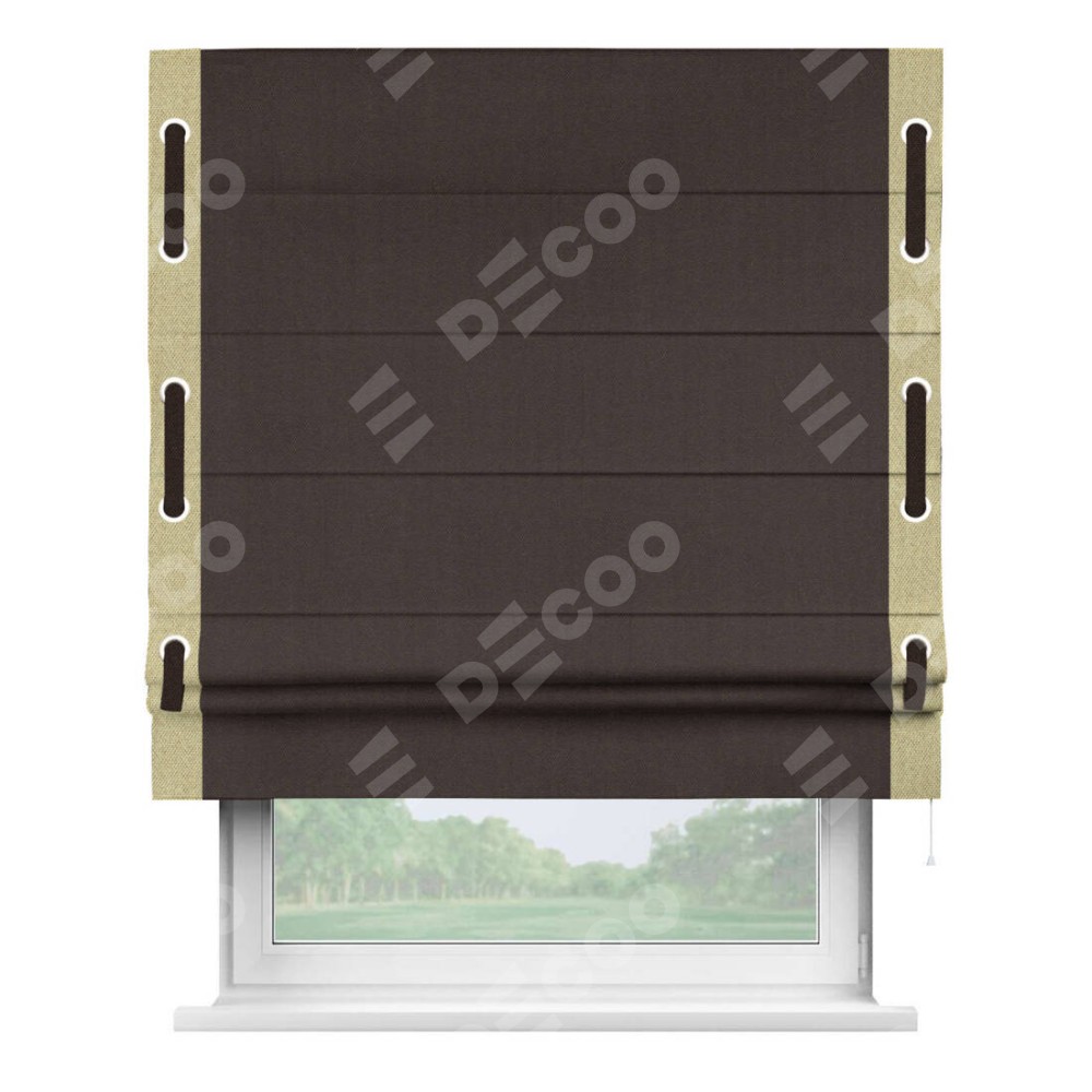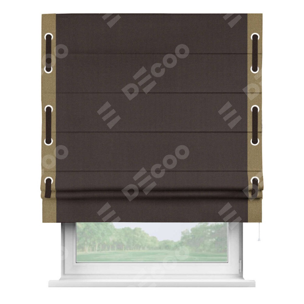 Римская штора «Кортин» для проема, лён димаут венге с кантом Стрим Дуо (люверсы с пояском)