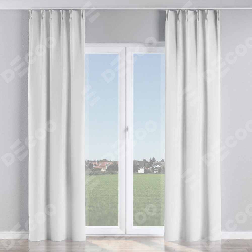 Комплект прямых штор, от производителя «Cortin», пошиты из ткани вайтаут однотонная белая, артикул ткани 93935. С изнаночной стороны в верхней части штор пристрачивается шторная лента с декоративными складками «Кустик». Для создания элегантных складок рекомендуемый коэффициент 1:2 (на 100 см. ширины проёма 200 см. ширины ткани). Важно! Ширина штор указана без учёта коэффициента сборки!