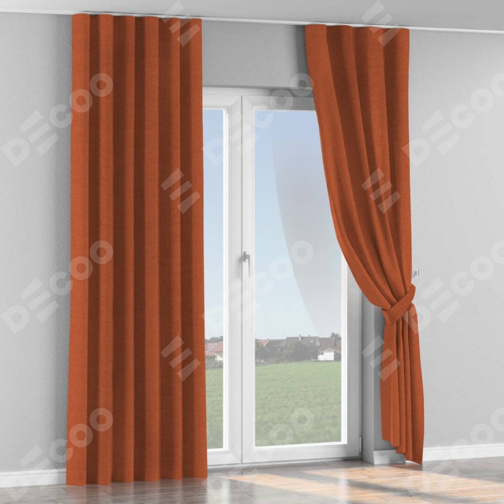 Комплект прямых штор, от производителя «Cortin», пошиты из ткани канвас терракотовый, артикул ткани v-107. С изнаночной стороны в верхней части штор пристрачивается шторная лента с декоративными складками «Волна». Для создания элегантных складок рекомендуемый коэффициент 1:2 (на 100 см. ширины проёма 200 см. ширины ткани). Важно! Ширина штор указана без учёта коэффициента сборки!