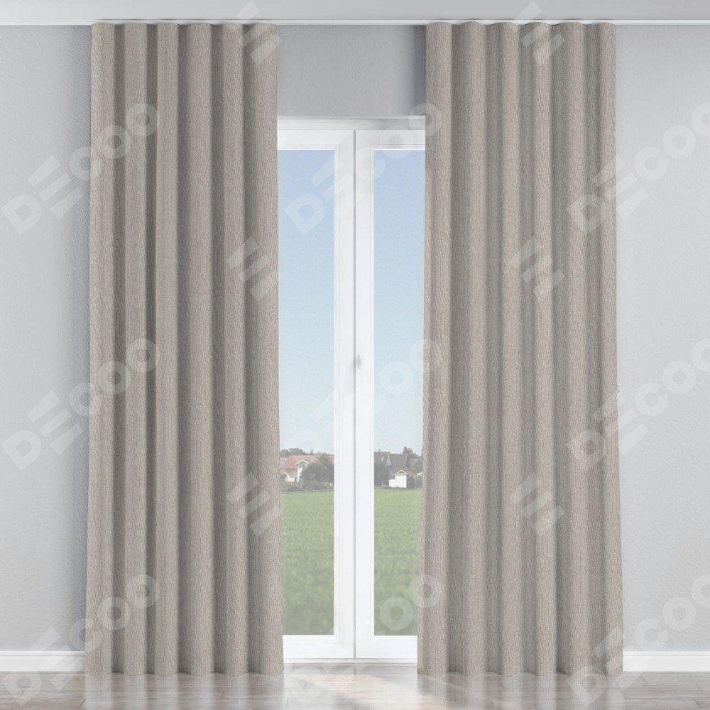 Комплект прямых штор, от производителя «Cortin», пошиты из ткани лён димаут серо-бежевый, артикул ткани 17. С изнаночной стороны в верхней части штор пристрачивается шторная лента с декоративными складками «Волна». Для создания элегантных складок рекомендуемый коэффициент 1:2 (на 100 см. ширины проёма 200 см. ширины ткани). Важно! Ширина штор указана без учёта коэффициента сборки!