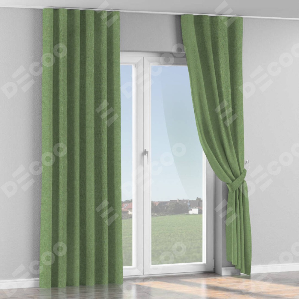 Комплект прямых штор, от производителя «Cortin», пошиты из ткани лён димаут светло-салатовый, артикул ткани 128528. С изнаночной стороны в верхней части штор пристрачивается шторная лента с декоративными складками «Волна». Для создания элегантных складок рекомендуемый коэффициент 1:2 (на 100 см. ширины проёма 200 см. ширины ткани). Важно! Ширина штор указана без учёта коэффициента сборки!