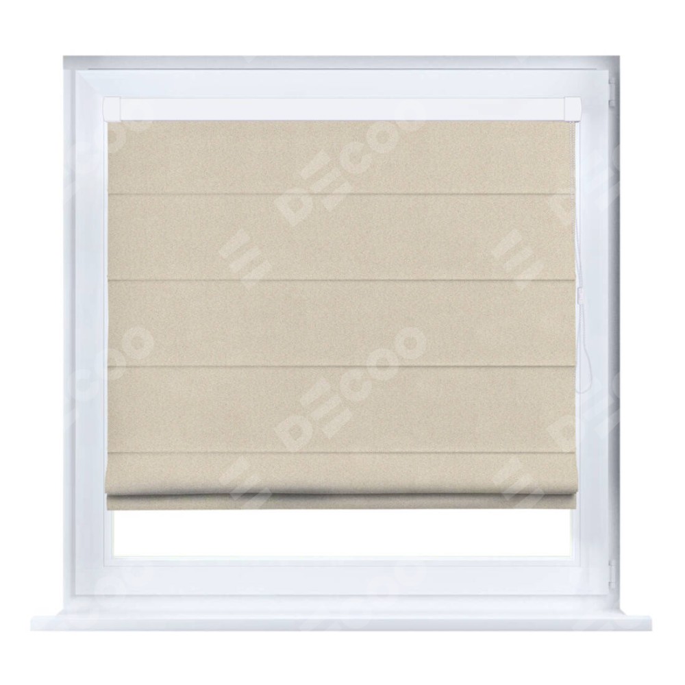 Римская штора производителя «Cortin», устанавливается на створку окна, пошита из ткани блэкаут однотонный кофейно-бежевый, артикул 91566−1. Штора шьётся по индивидуальным размерам, для данного типа римской шторы возможная ширина от 35 до 150 см., высота до 250 см.