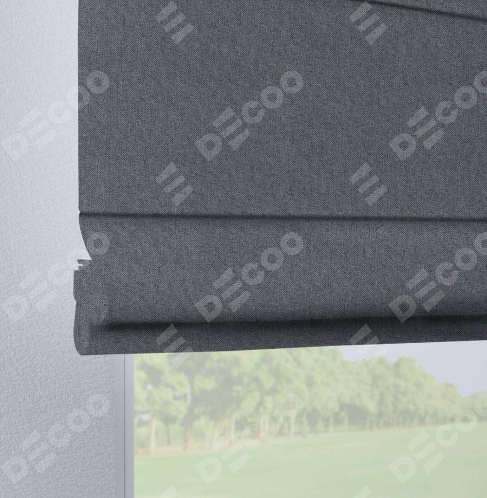 Римская штора на петлях «Кортин», ткань лён блэкаут, тёмно-серый