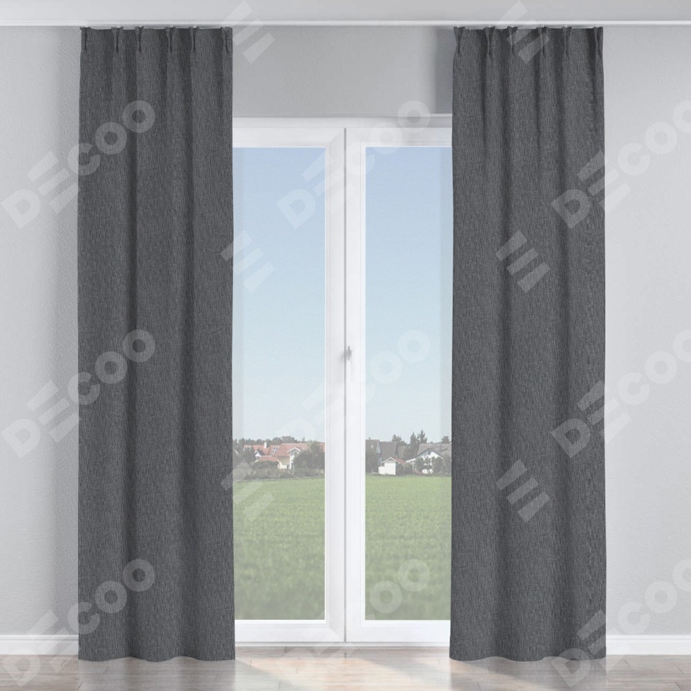 Комплект прямых штор, от производителя «Cortin», пошиты из ткани лён димаут графит, артикул ткани 140644. С изнаночной стороны в верхней части штор пристрачивается шторная лента с декоративными складками «Кустик». Для создания элегантных складок рекомендуемый коэффициент 1:2 (на 100 см. ширины проёма 200 см. ширины ткани). Важно! Ширина штор указана без учёта коэффициента сборки!