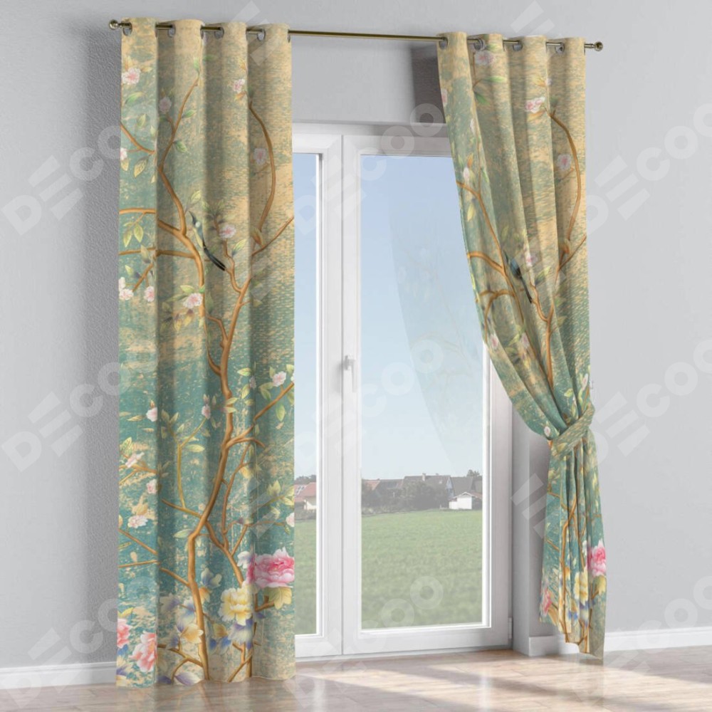 Комплект прямых штор, от производителя «Cortin», пошиты из ткани Цветущий сад, артикул ткани. Данная модель пошита на люверсах, комплектуется на выбор круглым карнизом и подходит для монтажа на стену или потолок. Для создания элегантных складок рекомендуемый коэффициент 1:2 (на 100 см. ширины проёма 200 см. ширины ткани). Важно! Ширина штор указана без учёта коэффициента сборки!