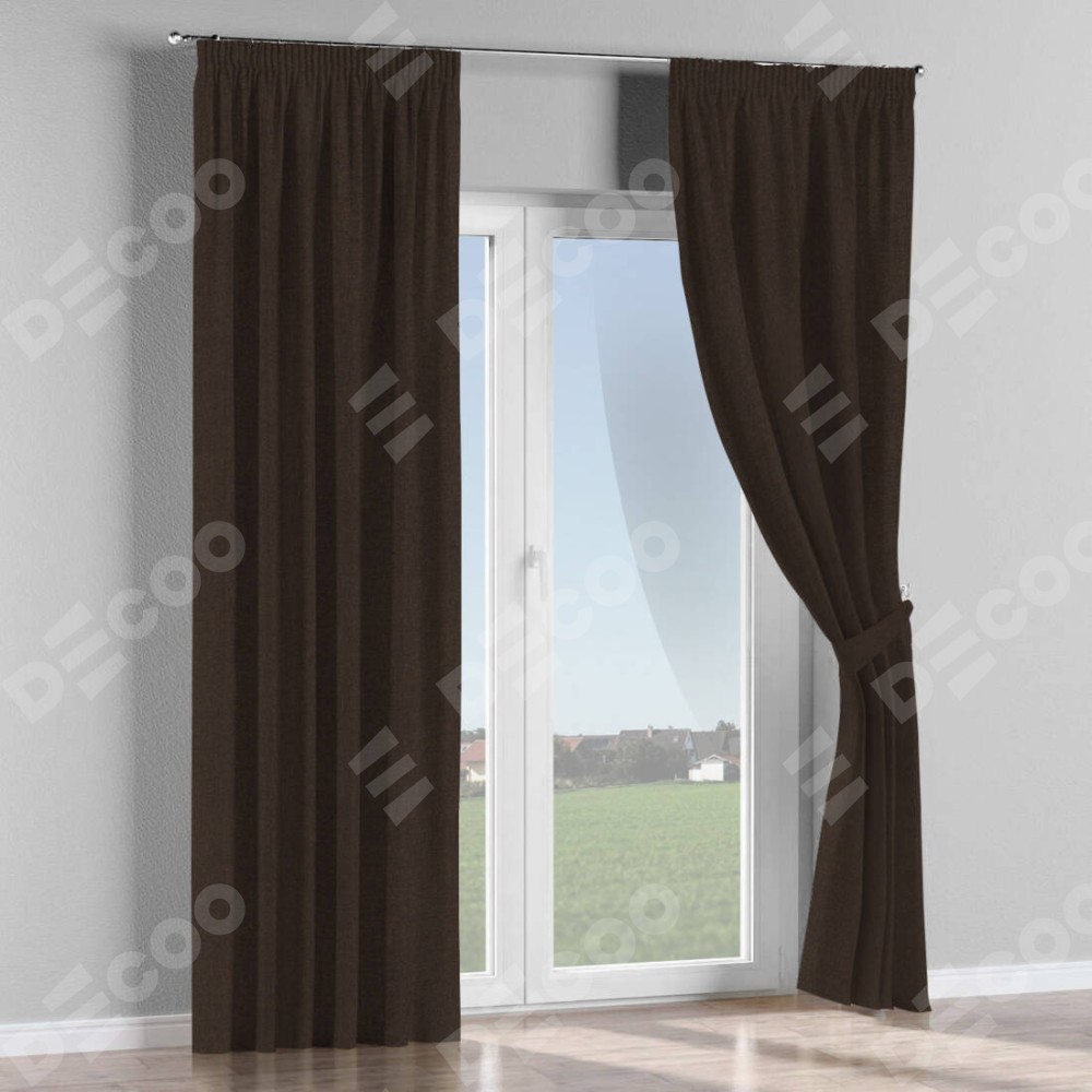 Комплект прямых штор, от производителя «Cortin», пошиты из ткани лён тёмно-коричневый, артикул ткани 104497. С изнаночной стороны в верхней части штор пристрачивается шторная лента с декоративными складками «Карандаш». Для создания элегантных складок рекомендуемый коэффициент 1:2 (на 100 см. ширины проёма 200 см. ширины ткани). Важно! Ширина штор указана без учёта коэффициента сборки!