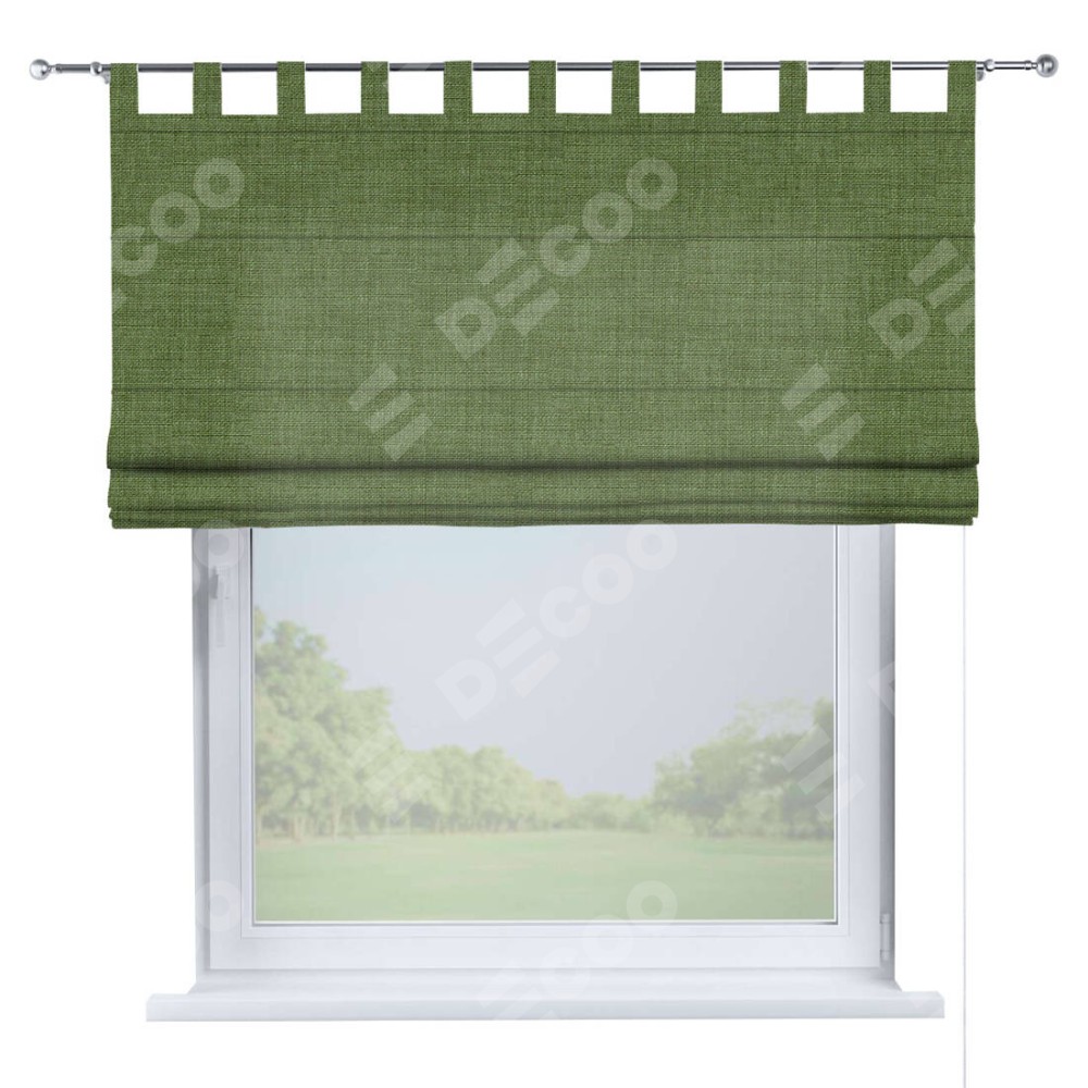 Римская штора производителя «Cortin», используется для проёма, пошита из ткани лён зелёный, артикул ткани 131547. Данная модель пошита на петлях, комплектуется на выбор круглым карнизом и подходит для монтажа на стену. Римская штора на петлях имеет простую систему регулировки высоты, отличительным преимуществом данной модели является простой способ монтажа. Достаточно повесить ее на трубу и штора готова!