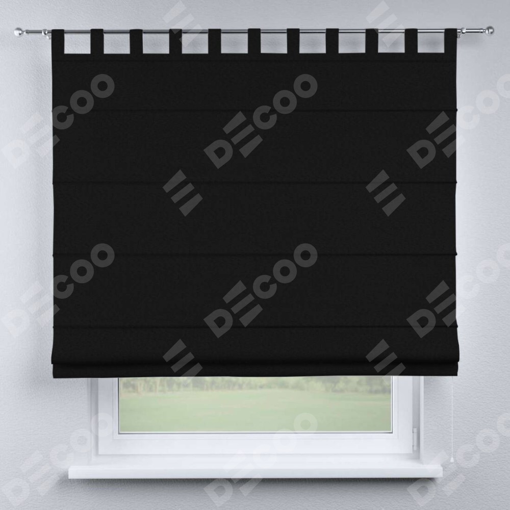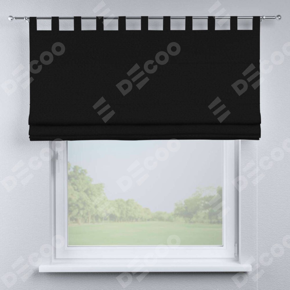 Римская штора производителя «Cortin», используется для проёма, пошита из ткани лён рустик черный, артикул ткани 145313. Данная модель пошита на петлях, комплектуется на выбор круглым карнизом и подходит для монтажа на стену. Римская штора на петлях имеет простую систему регулировки высоты, отличительным преимуществом данной модели является простой способ монтажа. Достаточно повесить ее на трубу и штора готова!
