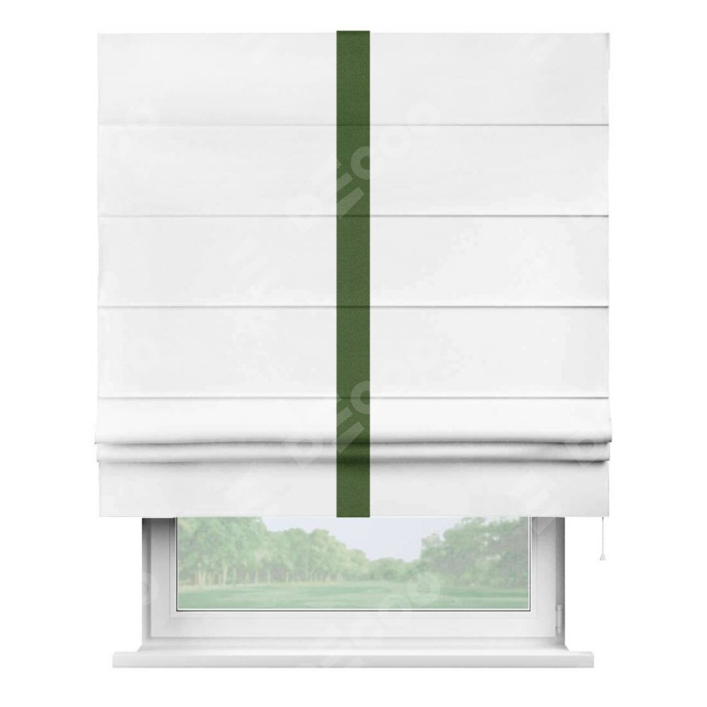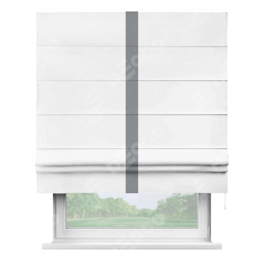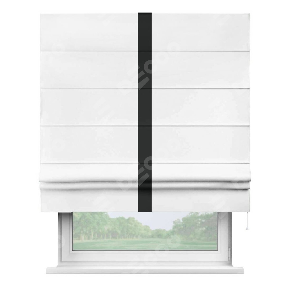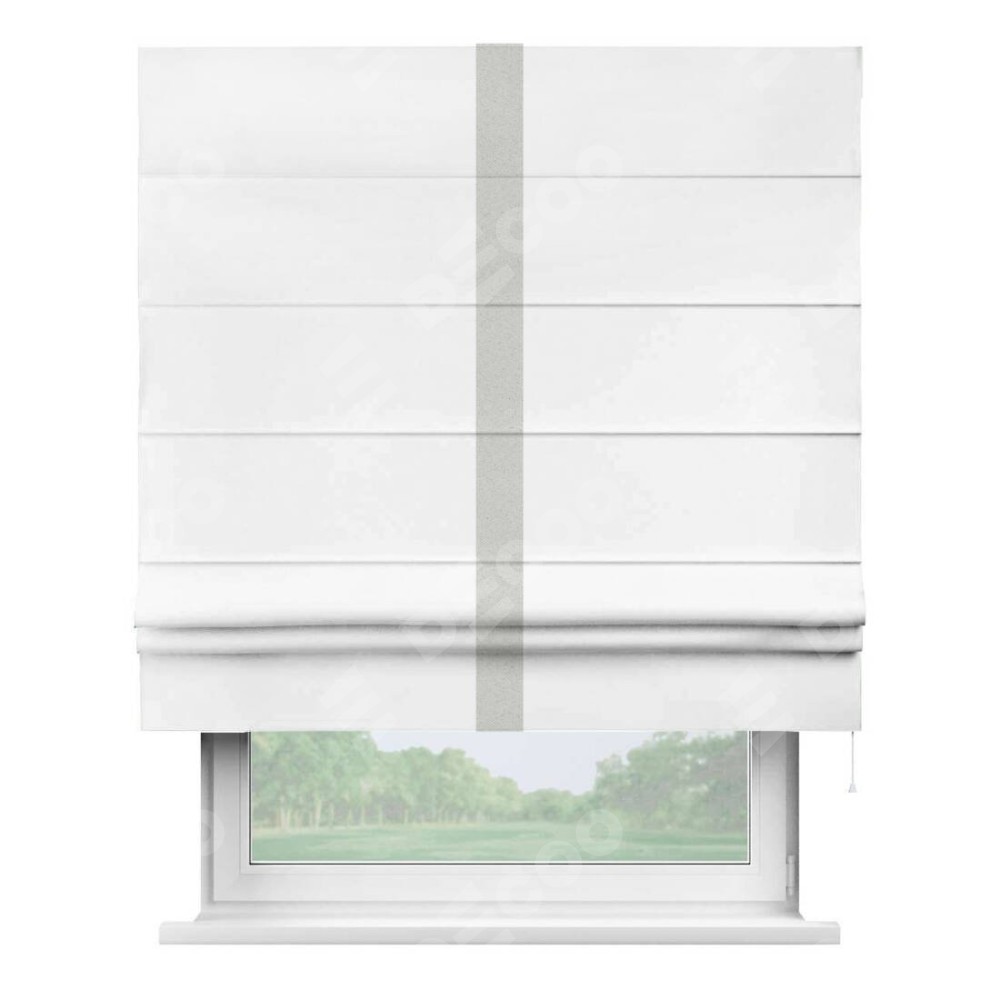 Римская штора «Кортин» для проёма, вайтаут однотонная белая с кантом Хайвэй