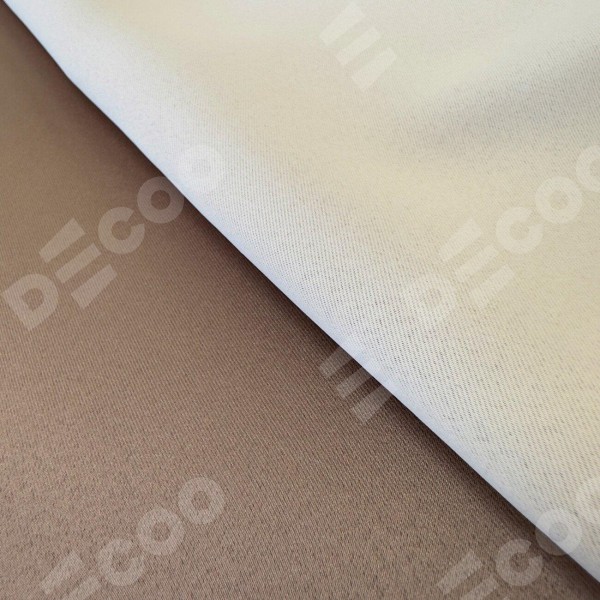 Двойная римская штора «День-ночь» от производителя Cortin предназначена для использования в проёмах. Эта штора уникальна тем, что состоит из двух полотен. На лицевой стороне находится однотонный блэкаут кофейно-бежевый (артикул: 91566−1), обеспечивающий эффективное затемнение. В комплект также входит вторая ткань — легкий белый тюль (артикул: V-01), который добавляет изящества и легкости оформлению окна. Кроме того, доступны и другие разновидности ткани тюль, выбор которых доступен по ссылке .
