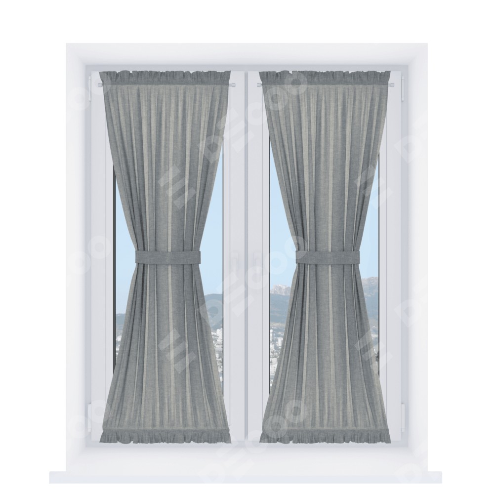 Штора «Песочные часы» производителя «Cortin», используется для створок окон и дверей, пошита из ткани рогожка димаут тёмно-серый, артикул ткани 80418.