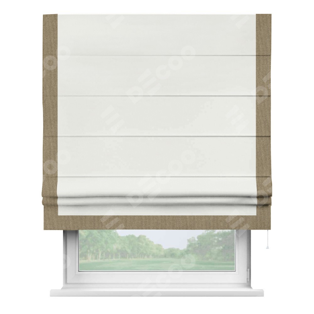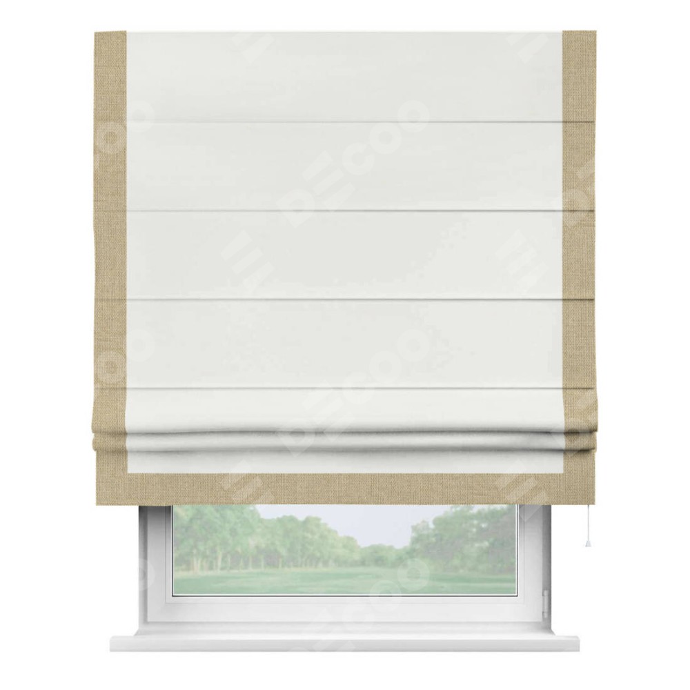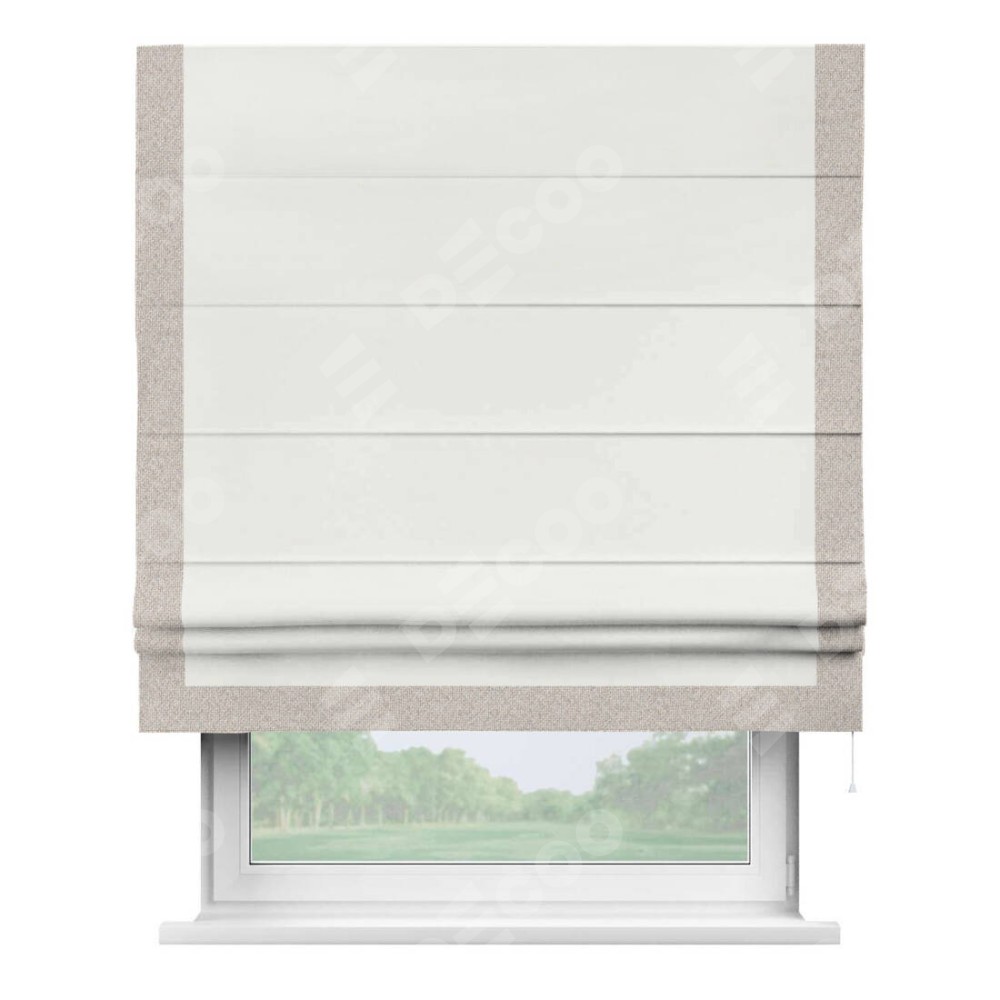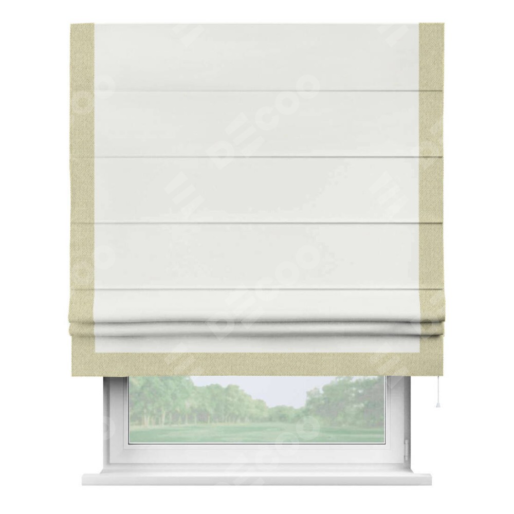 Римская штора «Кортин» для проема, лён димаут молочный с кантом Виктория