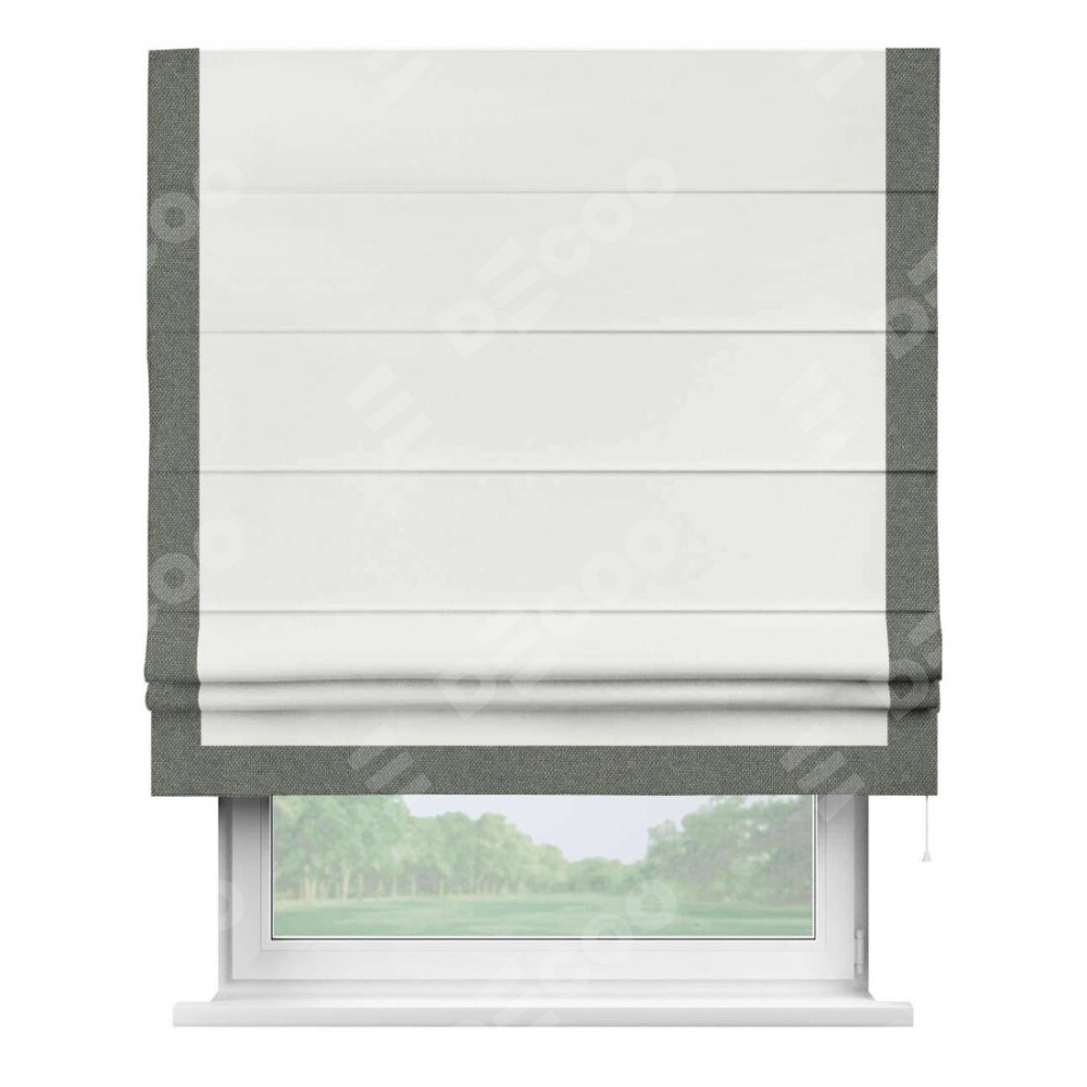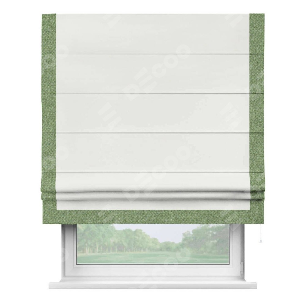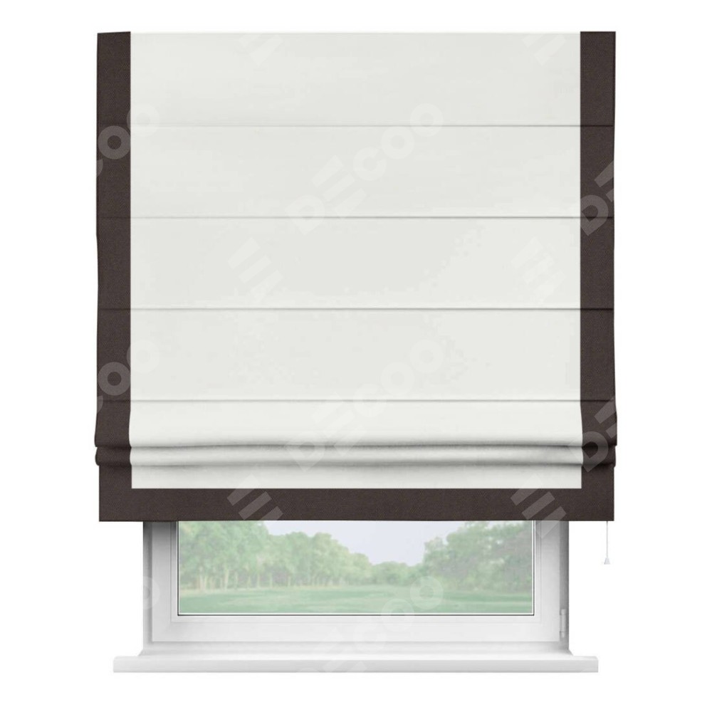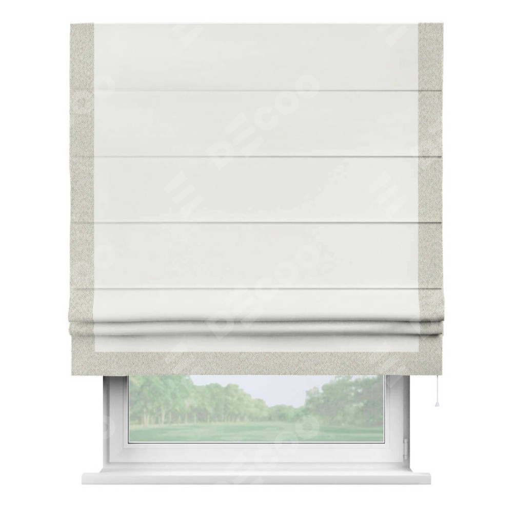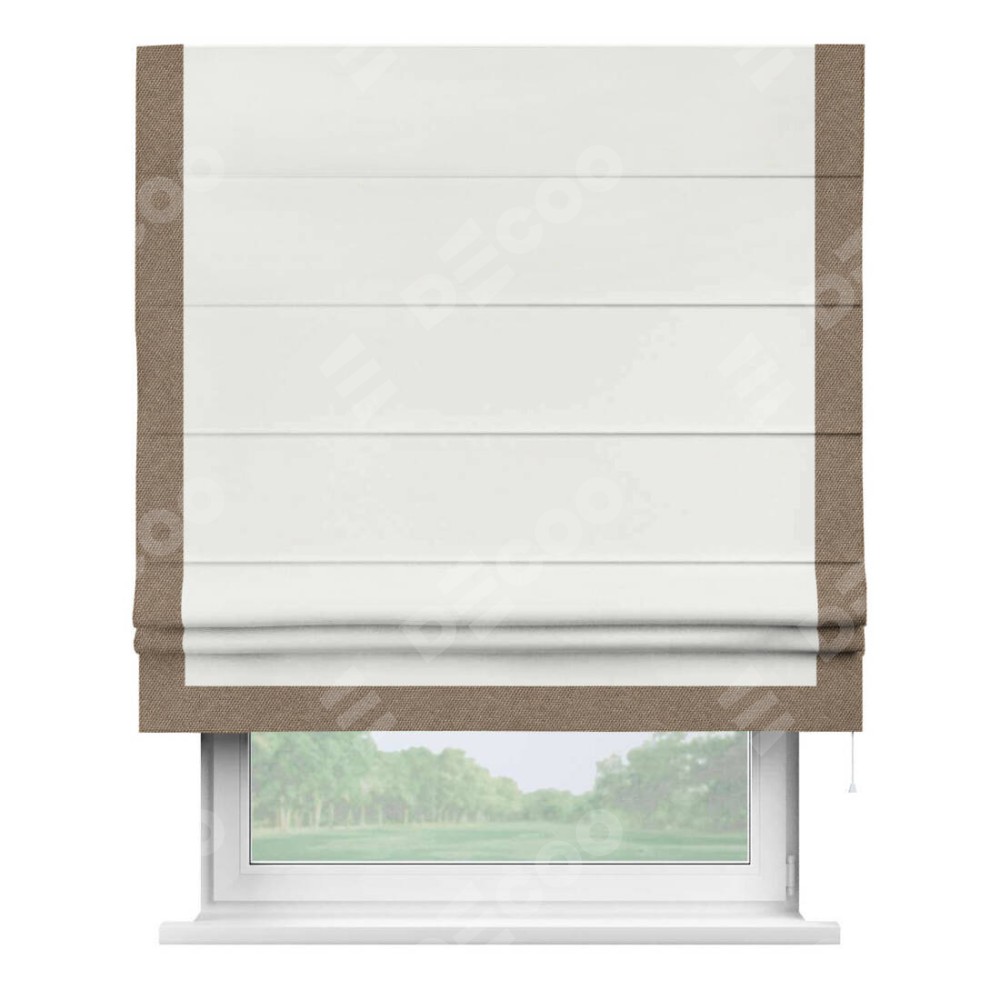 Римская штора «Кортин» для проема, лён димаут молочный с кантом Виктория