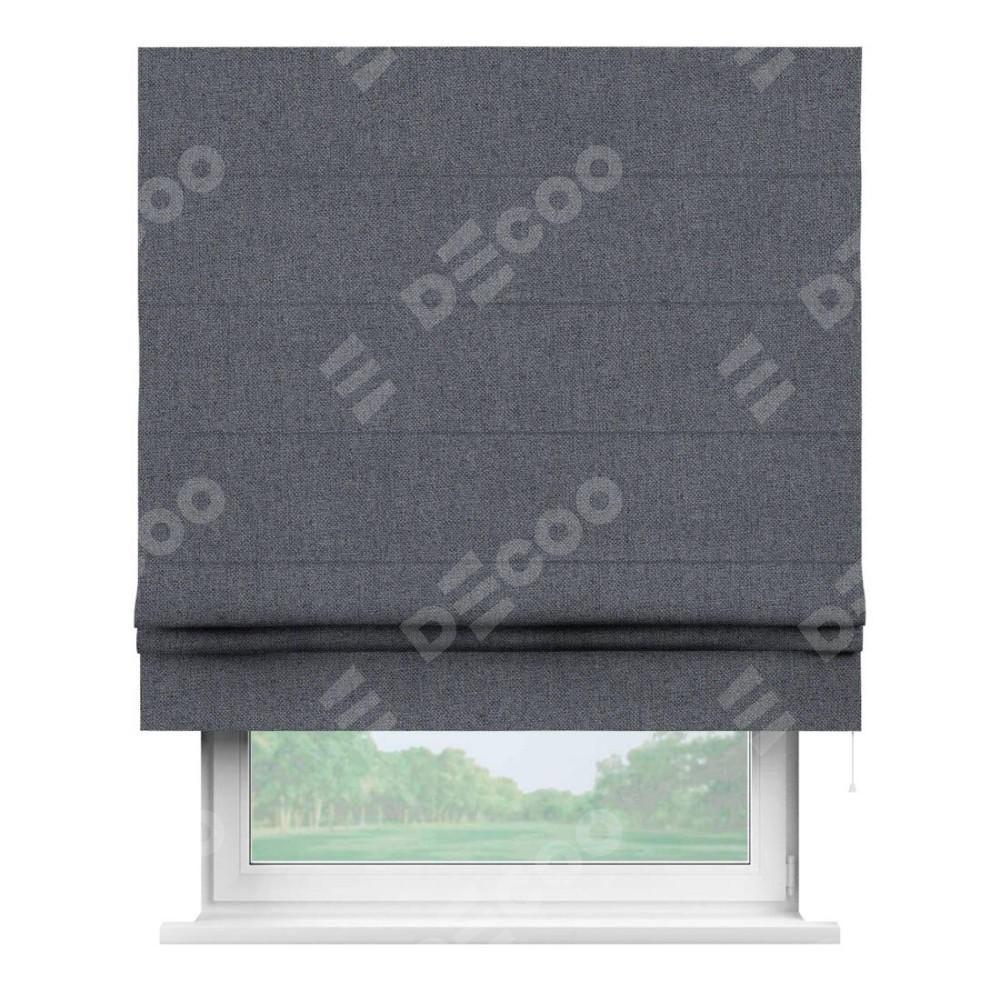 Римская штора «Кортин» для проема, ткань лён блэкаут, тёмно-серый