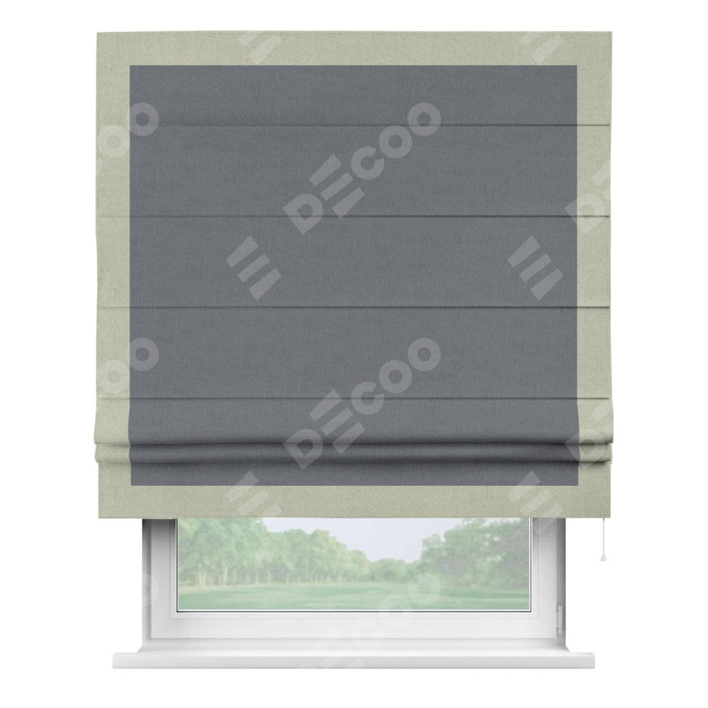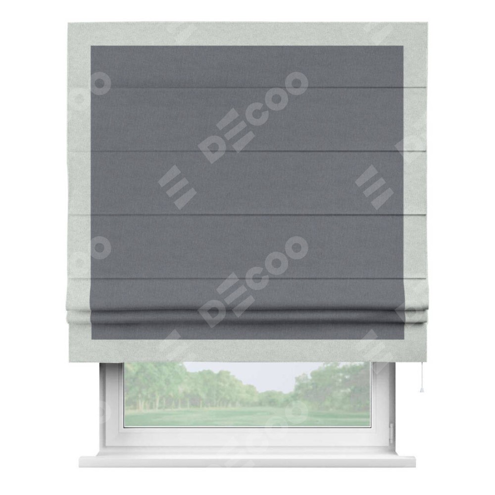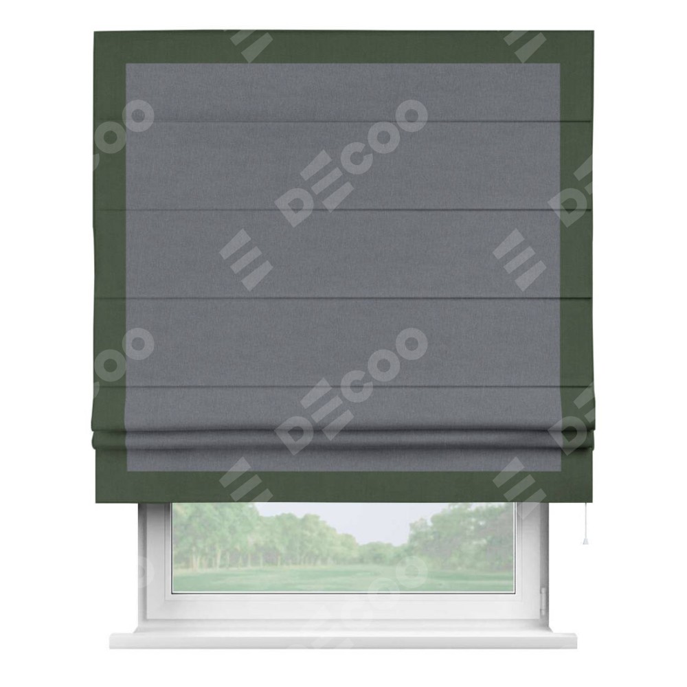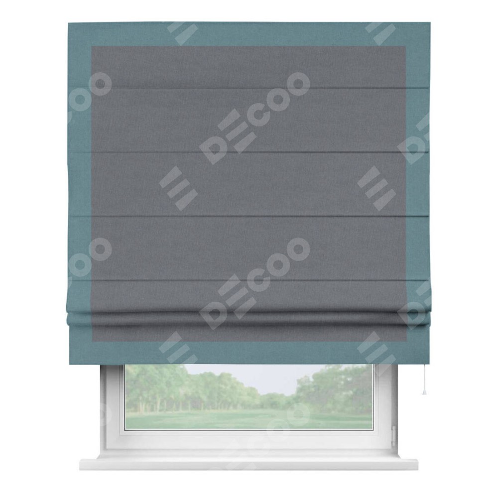 Римская штора «Кортин» с кантом Чесс, для проема, лён блэкаут тёмно-серый