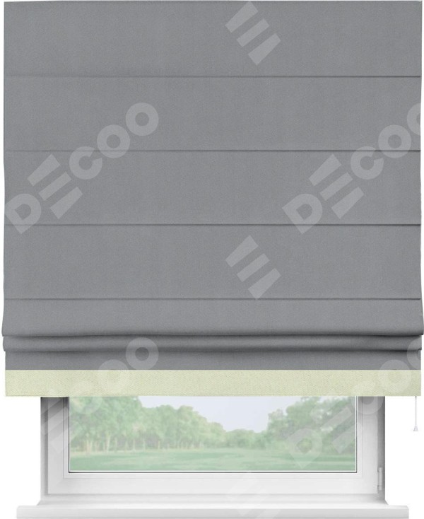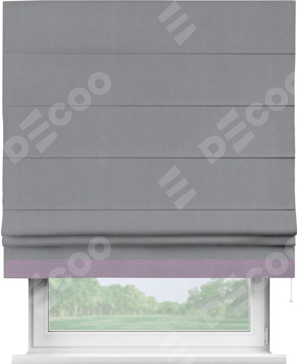 Римская штора «Кортин» для проема, блэкаут однотонный серый с кантом Джестер
