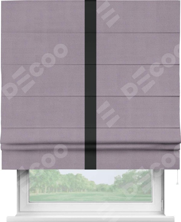 Римская штора «Кортин» для проёма, блэкаут однотонный лиловый с кантом Хайвэй