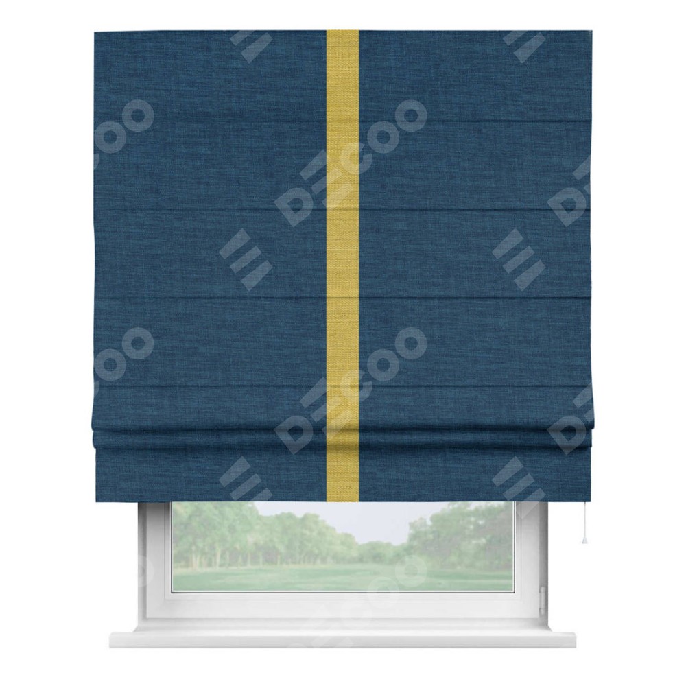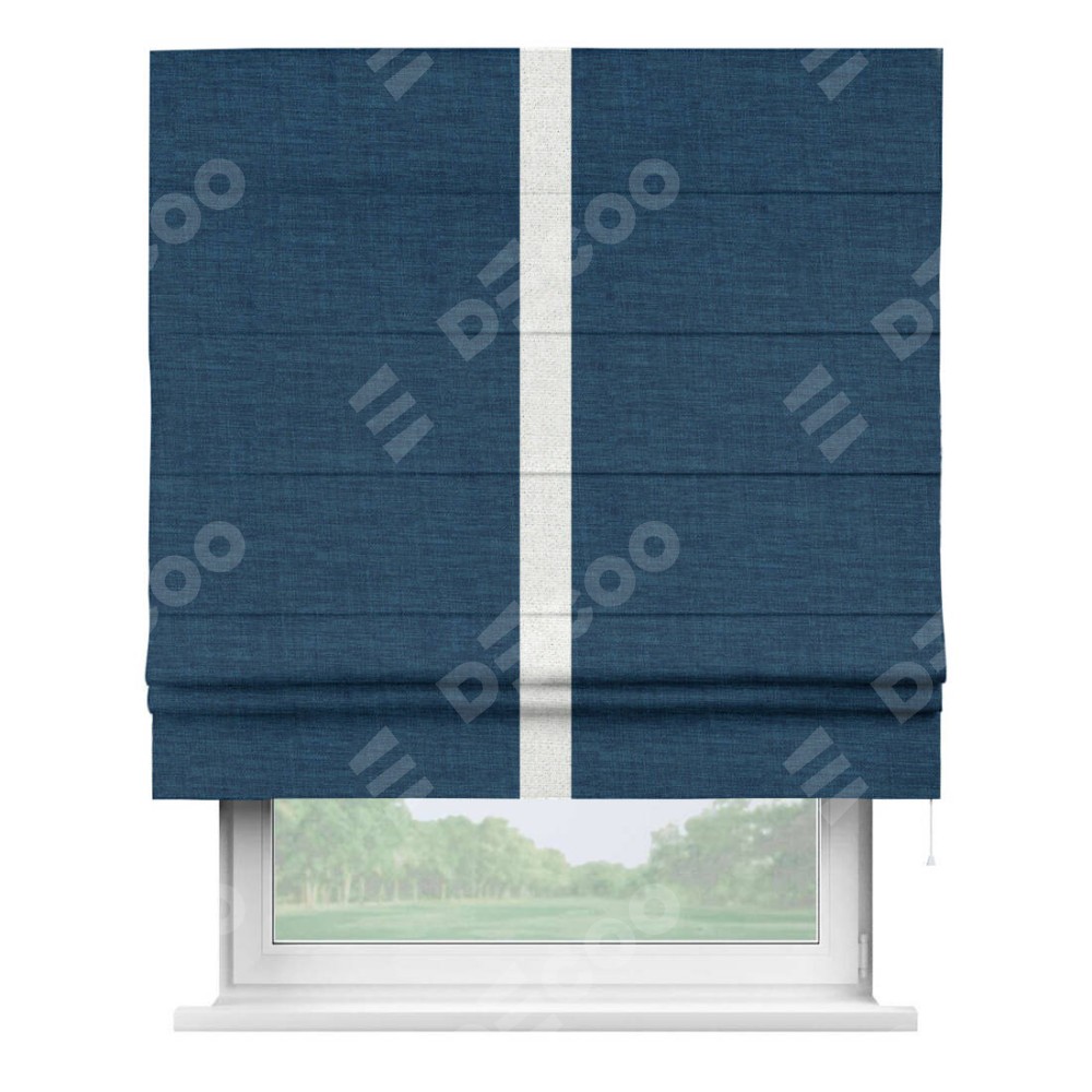 Римская штора «Кортин» для проёма, лён синий, с кантом Хайвэй