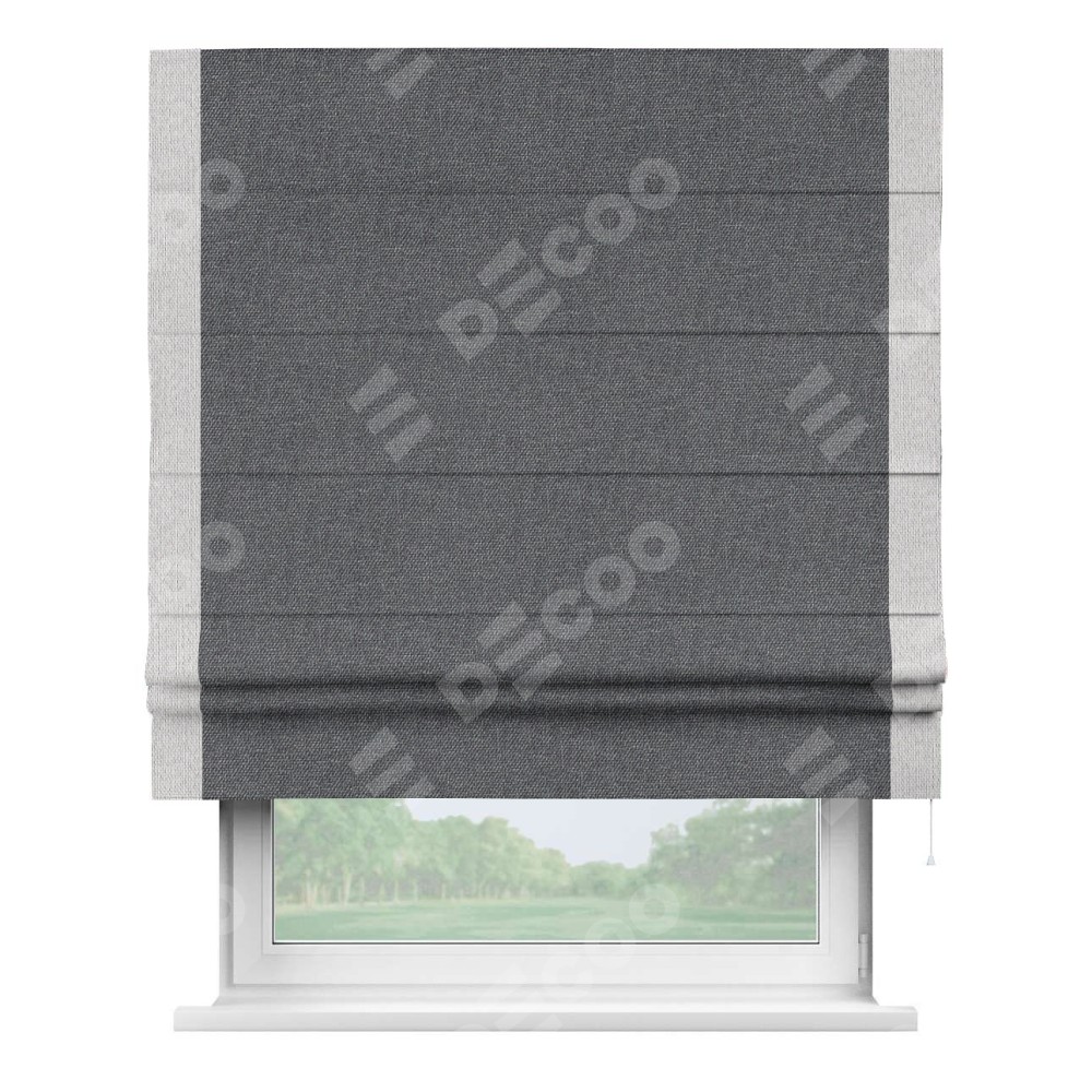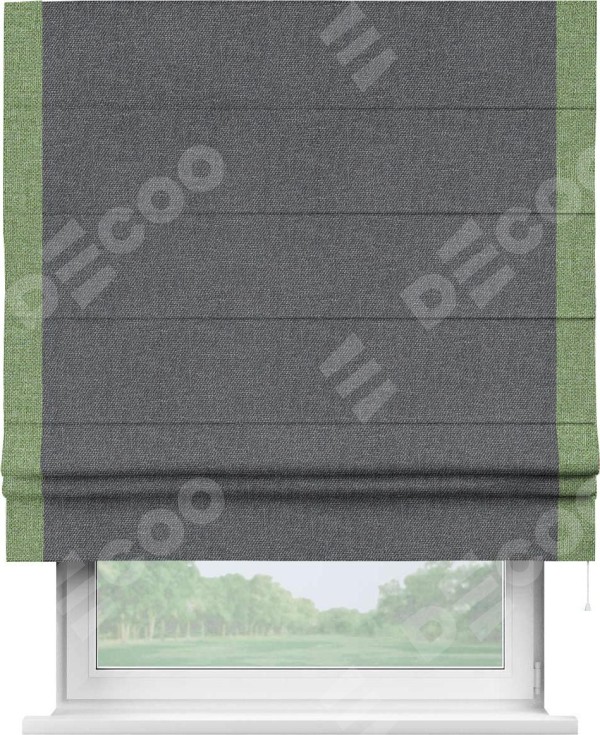 Классическая римская штора производителя «Cortin», пошита из ткани лён димаут графит, артикул: 140644. Имеет универсальный механизм и подходит для монтажа: на потолок, на стену и в нишу.