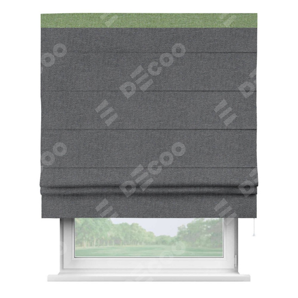 Классическая римская штора производителя «Cortin», пошита из ткани лён димаут графит, артикул: 140644. Имеет универсальный механизм и подходит для монтажа: на потолок, на стену и в нишу.
