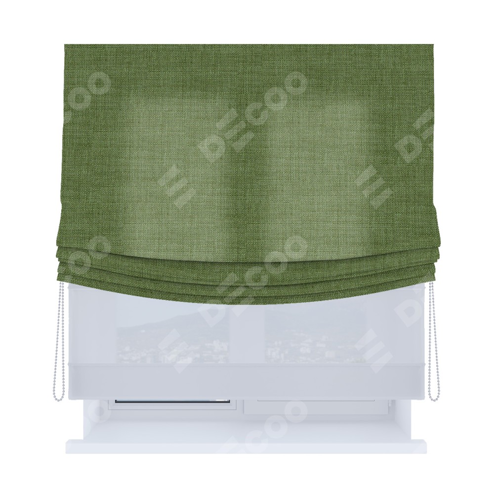 Двойная римская штора «День-ночь» от производителя Cortin предназначена для использования в проёмах. Эта штора уникальна тем, что состоит из двух полотен. На лицевой стороне находится лён зелёный (артикул: 131547), обеспечивающий эффективное затемнение. В комплект также входит вторая ткань — легкий белый тюль (артикул: V-01), который добавляет изящества и легкости оформлению окна. Кроме того, доступны и другие разновидности ткани тюль, выбор которых доступен по ссылке .