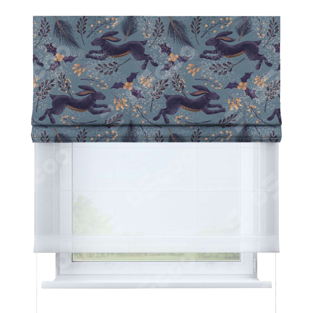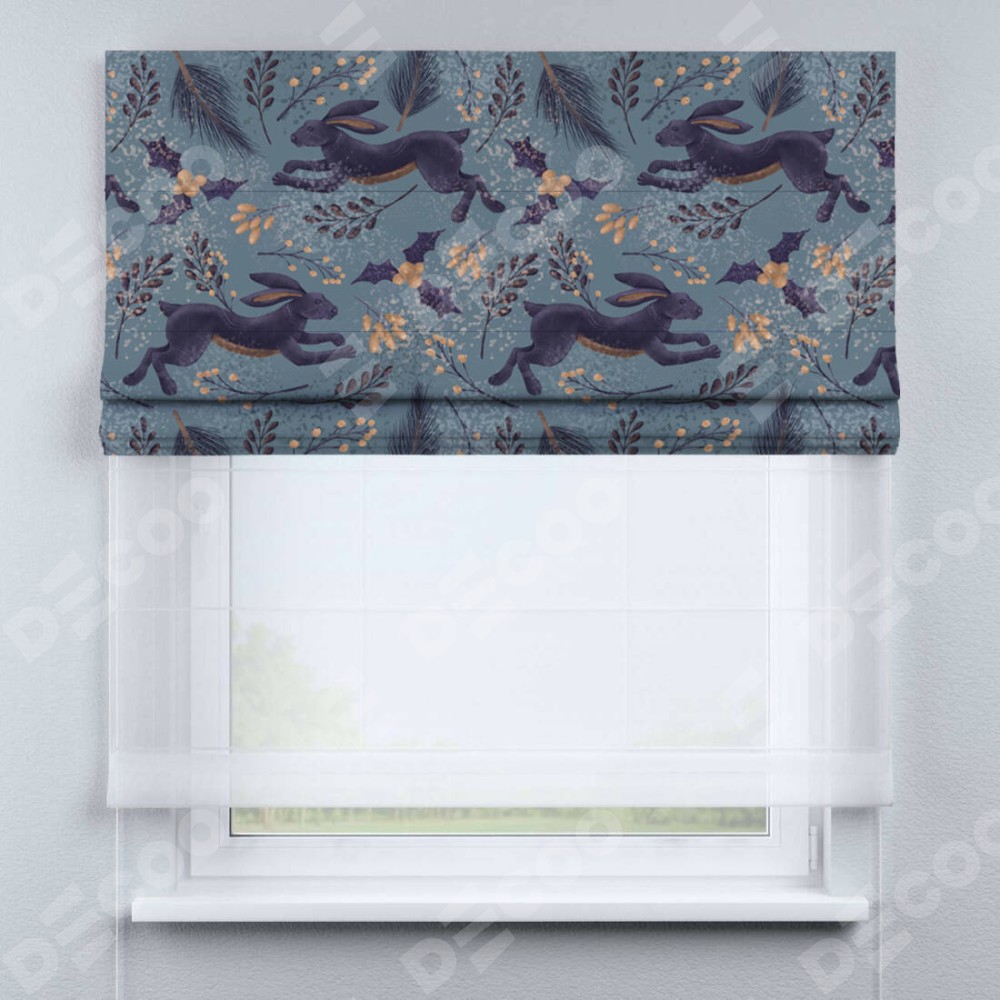 Двойная римская штора «День-ночь» от производителя Cortin предназначена для использования в проёмах. Эта штора уникальна тем, что состоит из двух полотен. На лицевой стороне находится дарк арт зайцы (артикул:), обеспечивающий эффективное затемнение. В комплект также входит вторая ткань — легкий белый тюль (артикул: V-01), который добавляет изящества и легкости оформлению окна. Кроме того, доступны и другие разновидности ткани тюль, выбор которых доступен по ссылке .