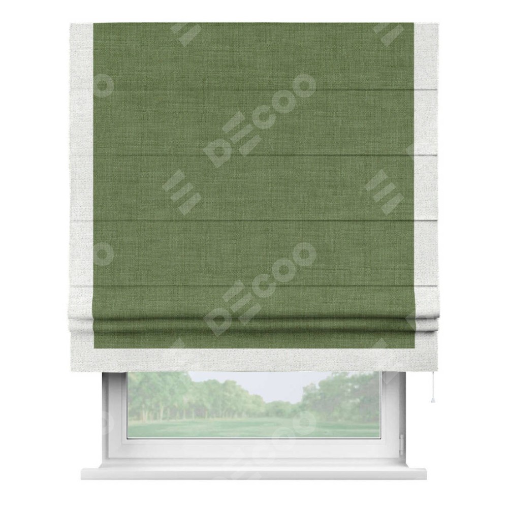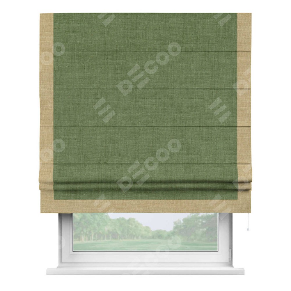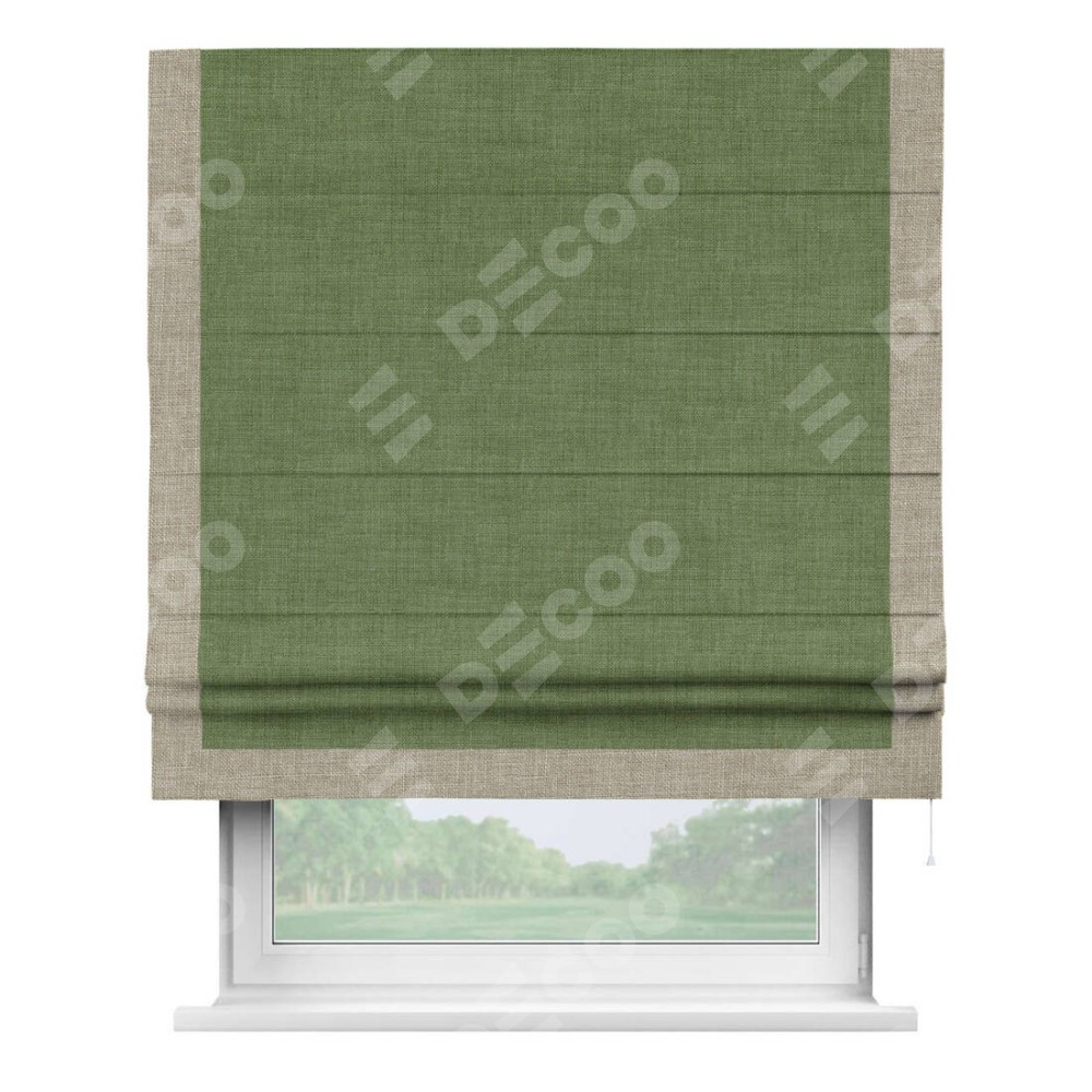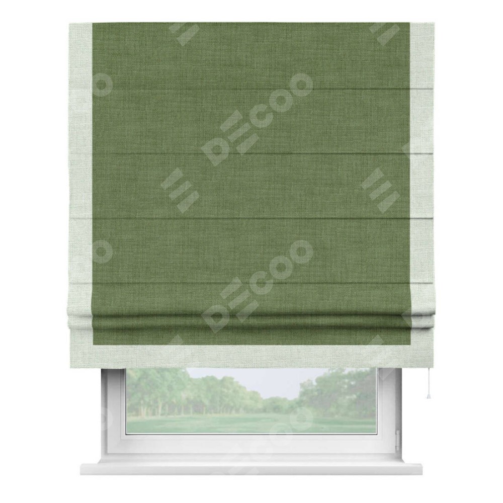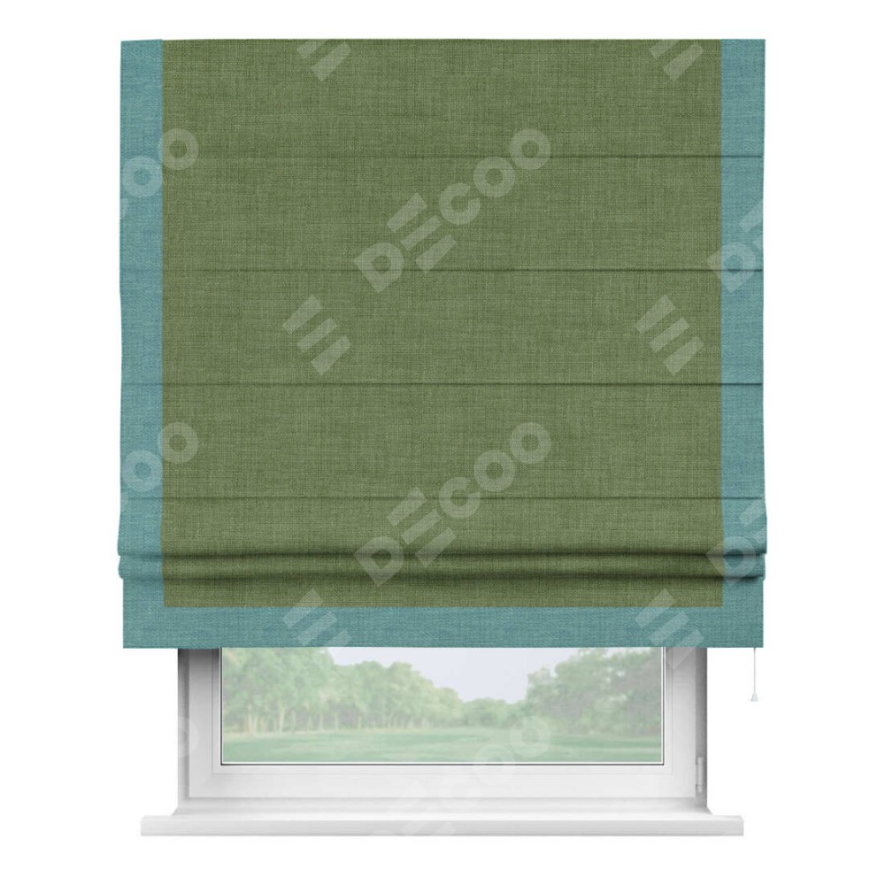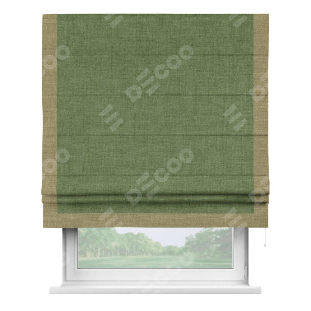 Римская штора «Кортин» для проёма, лён зелёный, с кантом Виктория