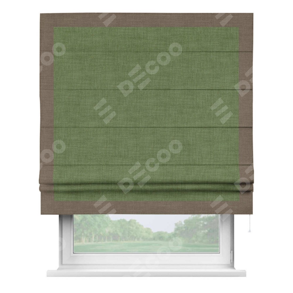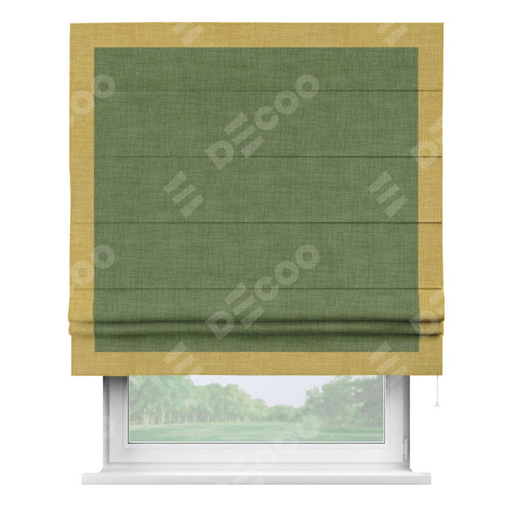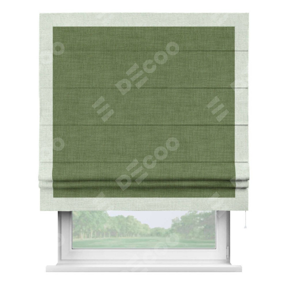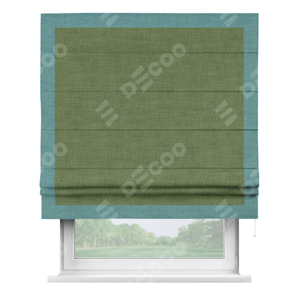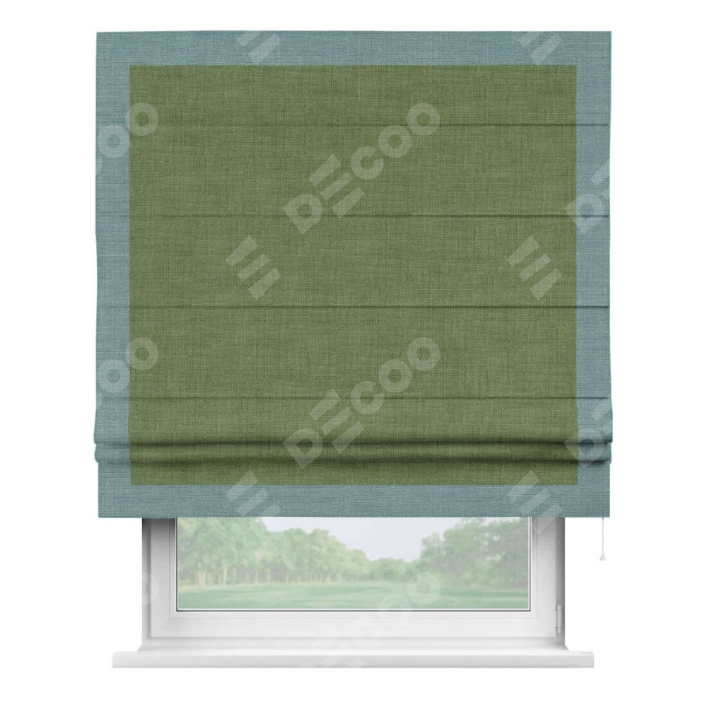 Римская штора «Кортин» для проёма, лён зелёный, с кантом Чесс